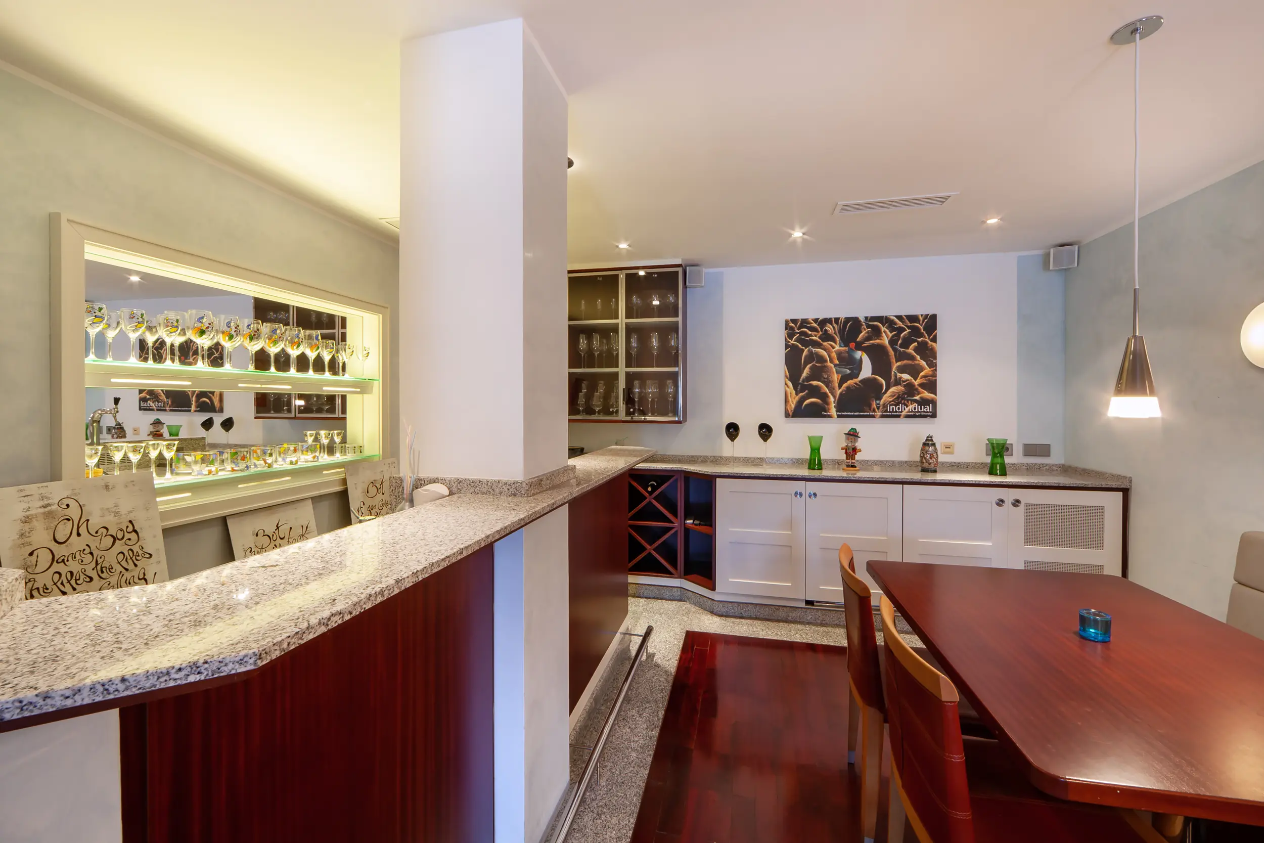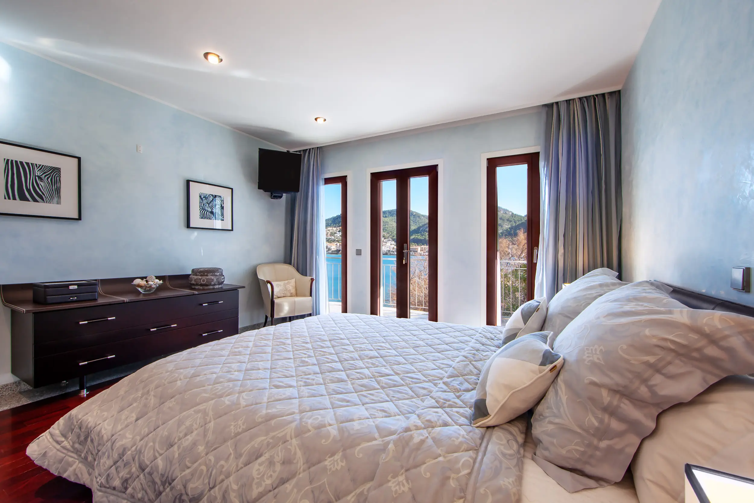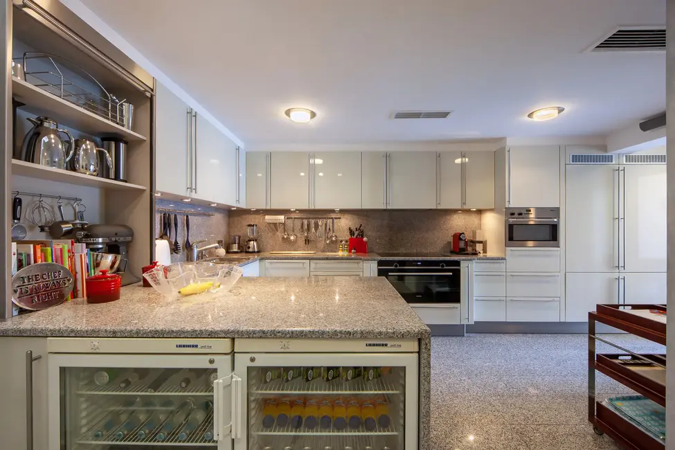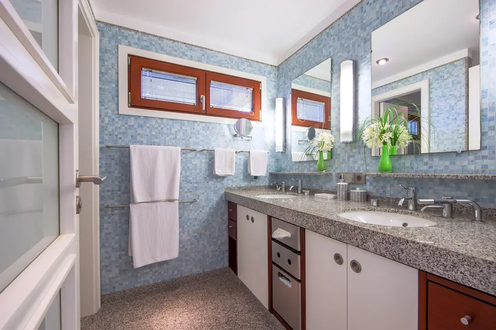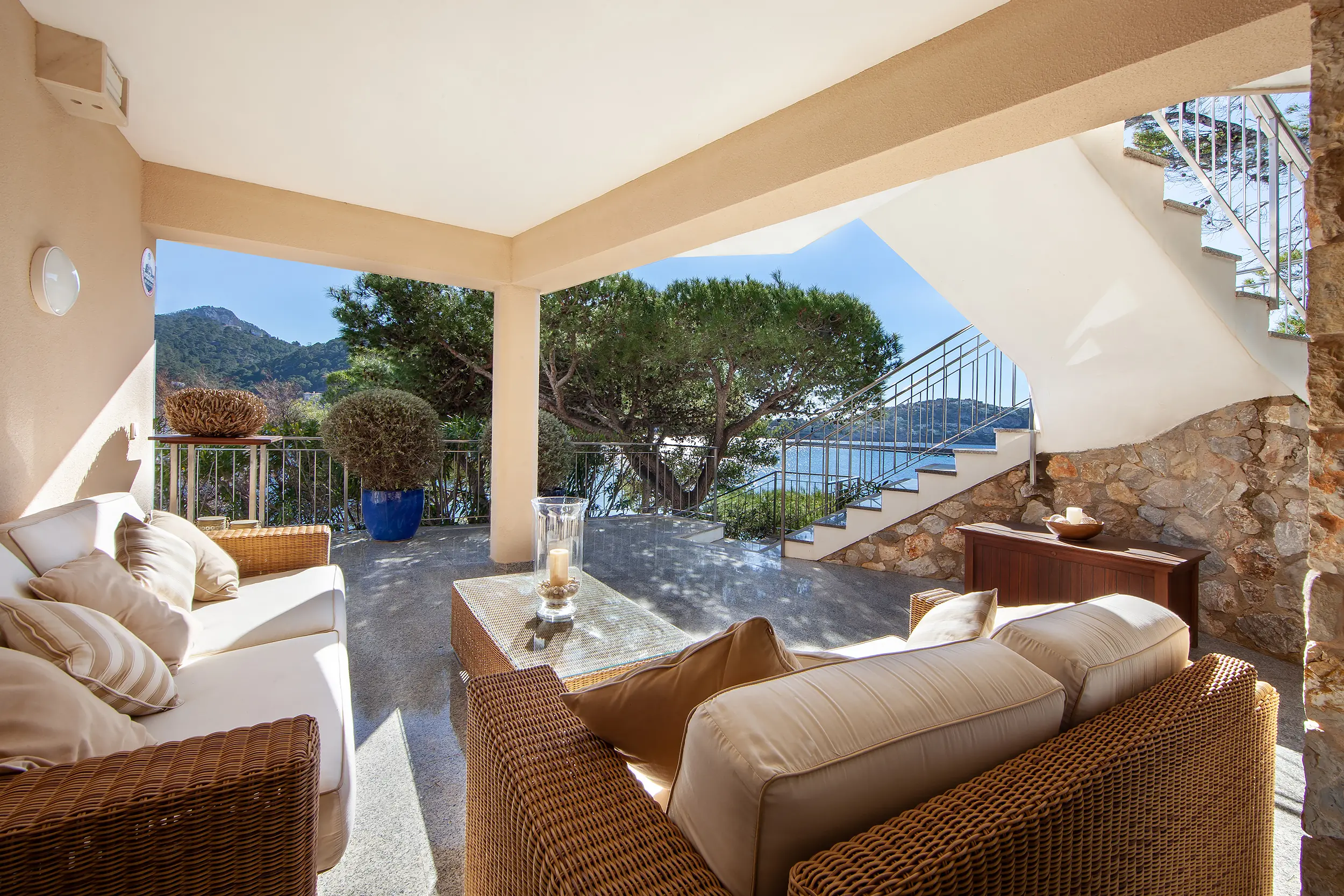 One level below, there are two additional bedroom suites and terraces. The lowest level houses the boat garage, another guest WC, and storage and technical rooms. The outdoor facilities include a slipway for up to three boats, direct access to the sea, and several picturesque terraces at sea level. Three parking spaces complete this exclusive offer. Photography by: Kristina Müller