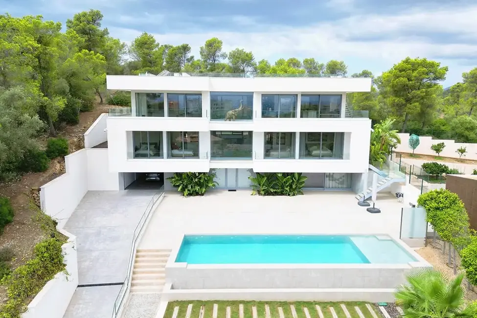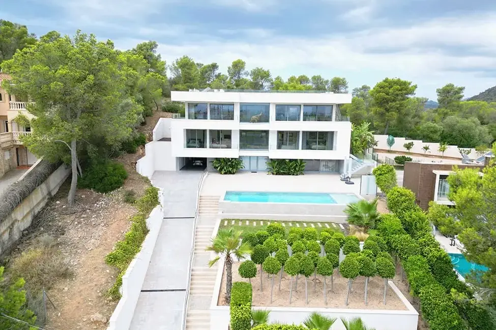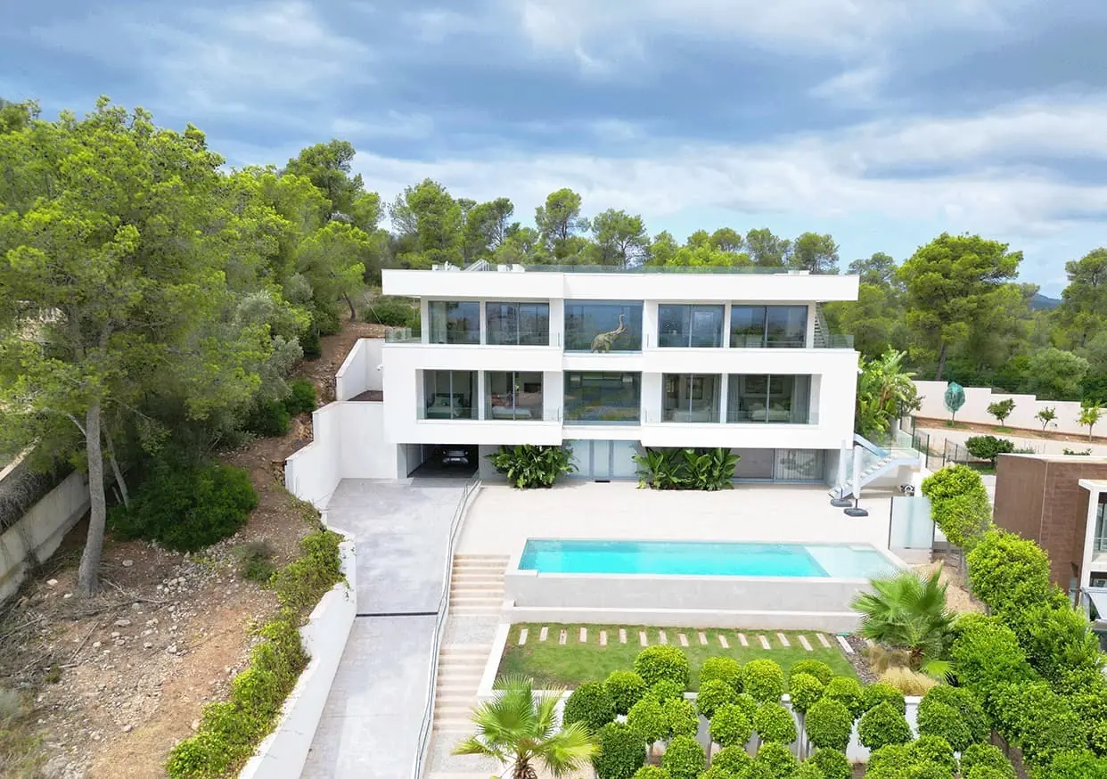 This exclusive new-build villa is perched on an elevated plot in a sought-after location in Palmanova and offers unparalleled sea views from all levels. Surrounded by renowned golf courses, beautiful beaches, and luxurious marinas, this three-story property meets the highest standards of living.