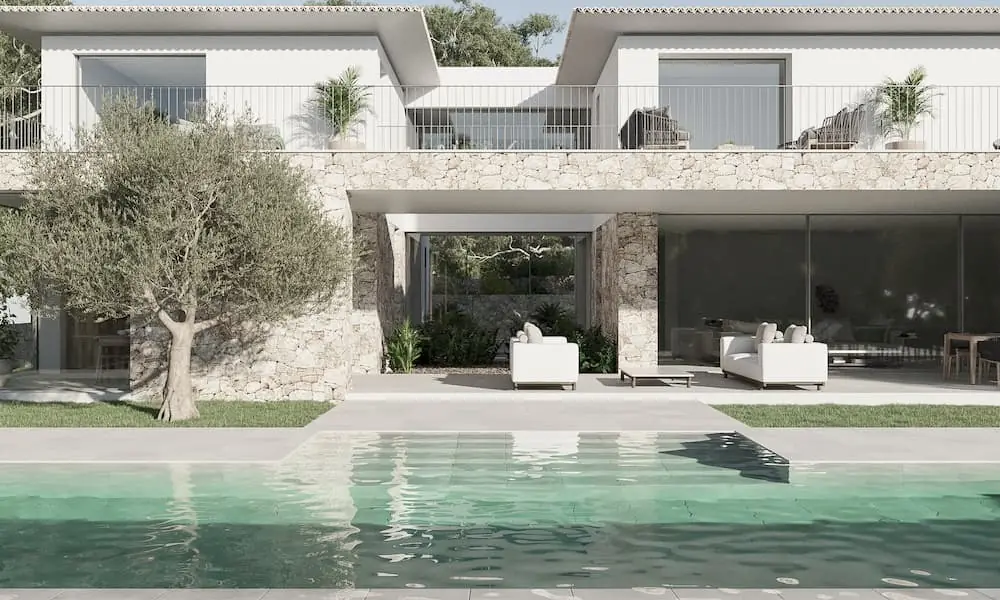 This exclusive family villa with passenger elevator, currently under construction, is located in one of the most sought-after areas of Santa Ponsa—just a few minutes' walk from a picturesque bay with a sandy beach and the prestigious Club Nautico. Despite its central location near the lively town center, the property offers maximum privacy and tranquility.