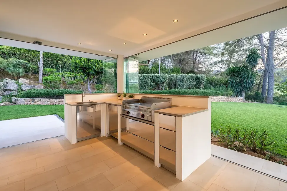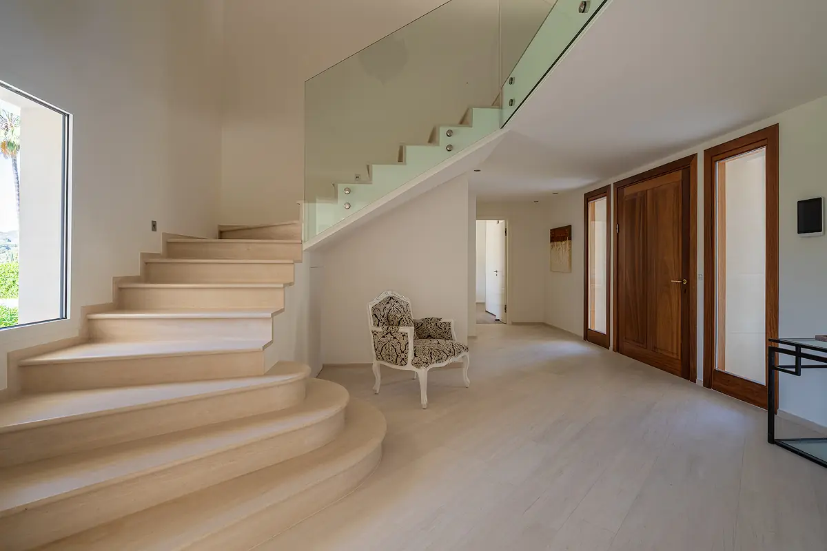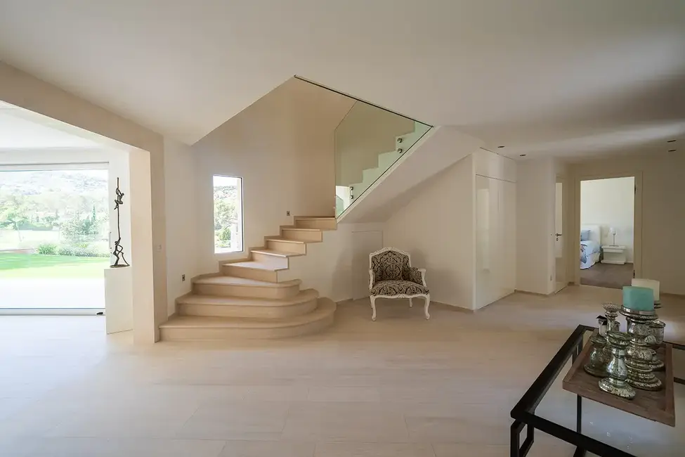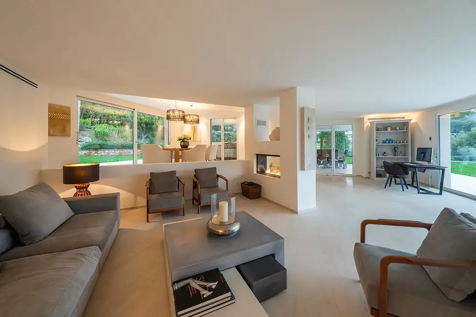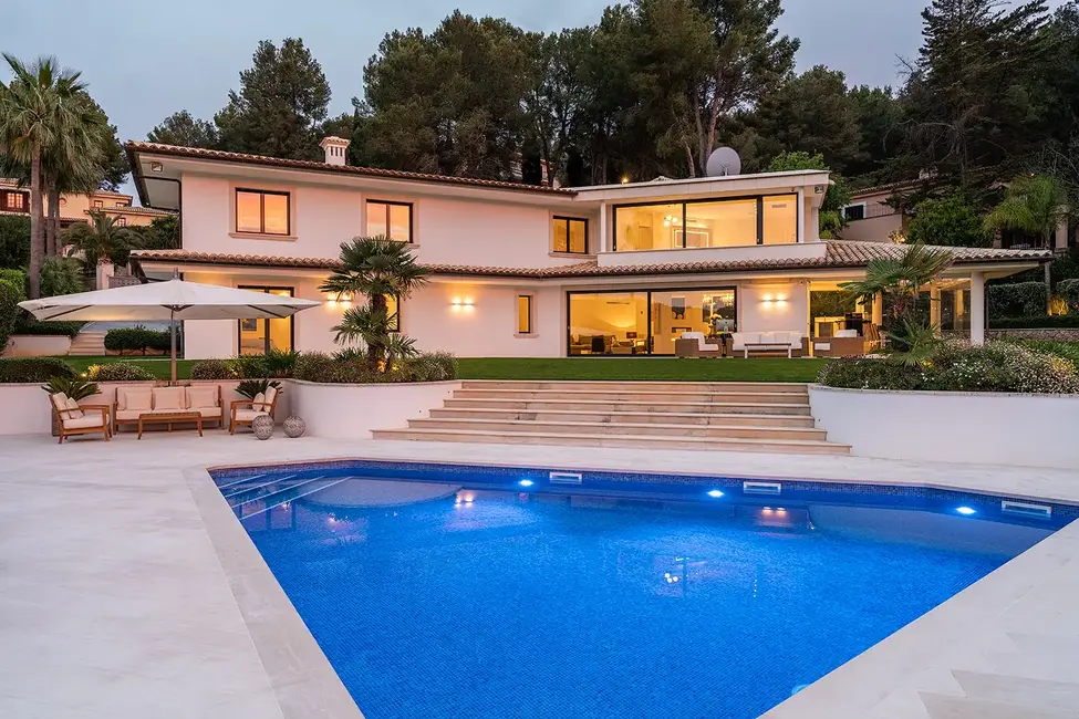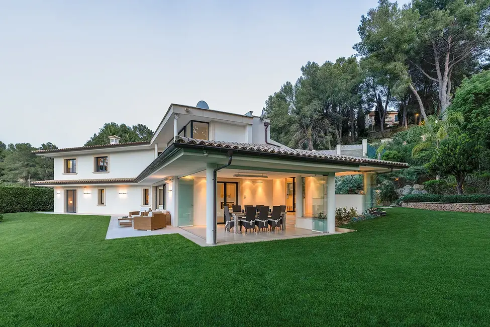 This impressive villa, built in 1988, is located in the exclusive Son Vida area of Palma and stands on a generous plot of approximately 2,025 m². With a total living area of approximately 556 m², this property offers luxurious living comfort on two levels. The house is located directly on the golf course and is surrounded by a carefully landscaped garden, creating a peaceful and exclusive atmosphere.
