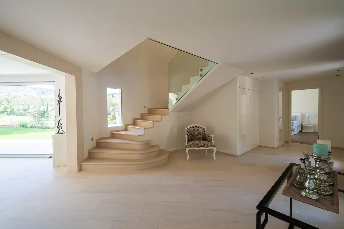 The villa impresses with its senior-friendly design and flat driveway, which allows easy access by car. The golf course clubhouse and the renowned five-star Arabella Sheraton Hotel are located in the immediate vicinity, underscoring the exclusive character of the location.