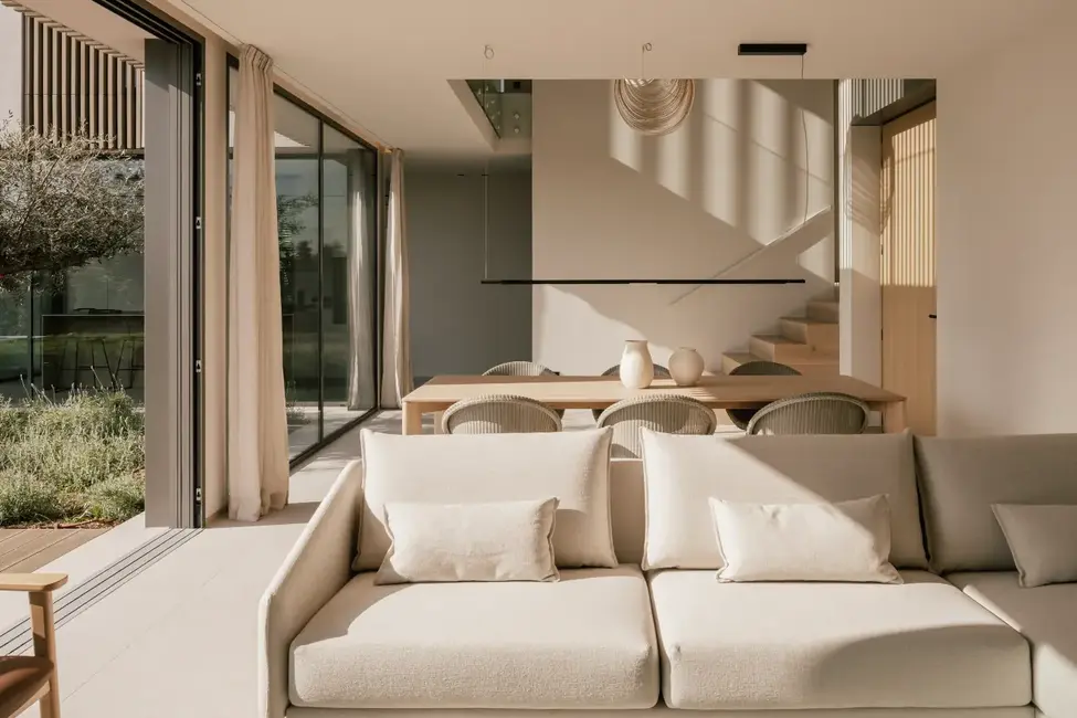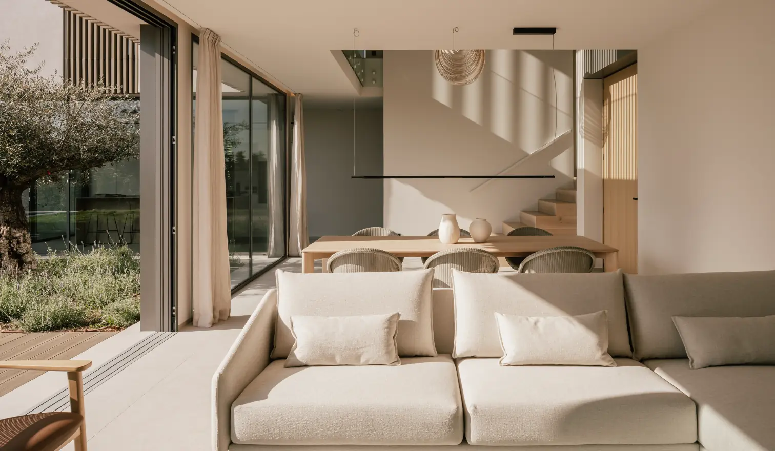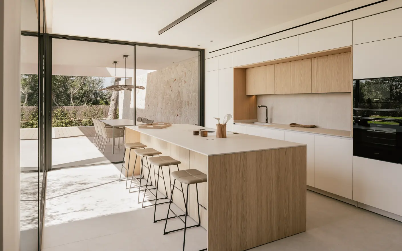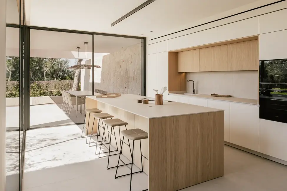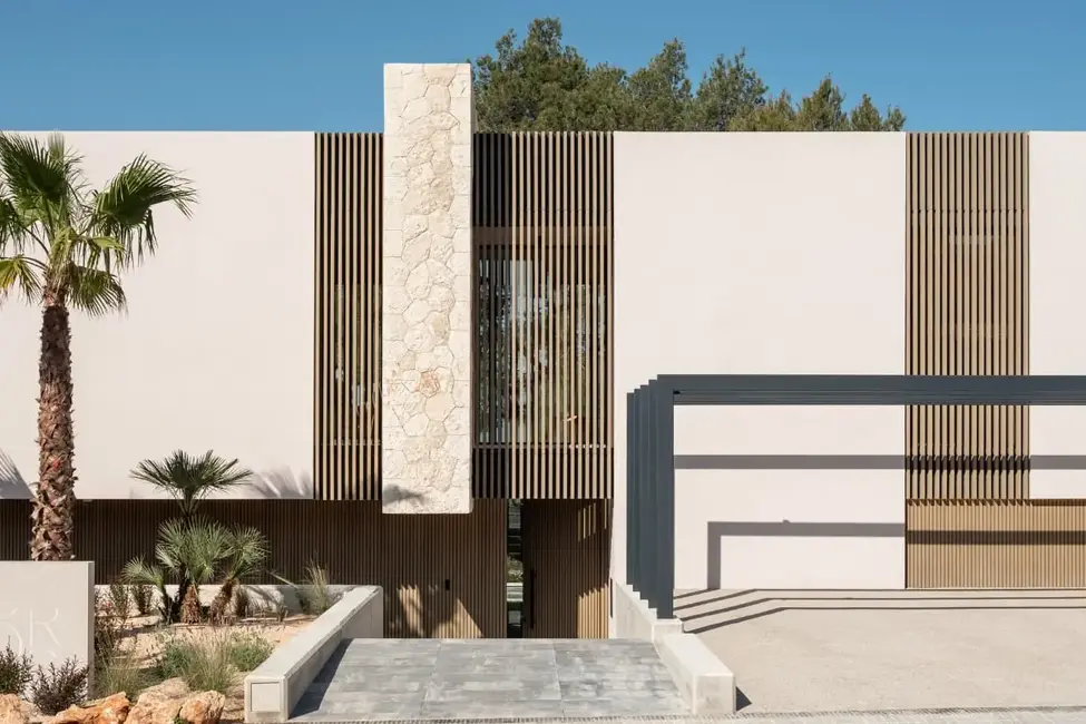 Project COR is a modern villa in the cubist style, located in the up-and-coming residential area of San Marçal (municipality of Sa Cabaneta / MarratxÃ), just 10 minutes from Palma de Mallorca. The design combines earthy tones, natural materials, and wooden façade elements to blend harmoniously into the Mediterranean surroundings.
