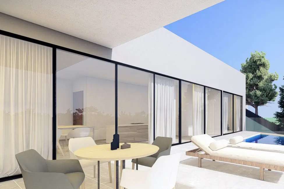 The property impresses with its modern and minimalist design. The open-plan living and dining area and a spacious bedroom with dressing room and en-suite bathroom are located on the upper level. Each room has direct access to the pool and terrace, where you can enjoy the Mallorcan sun. On the lower level, there is a spacious master bedroom with dressing room, en-suite bathroom, and private terrace, as well as two further bedrooms, each with their own bathroom.