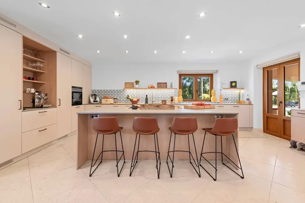 The finca combines Mallorcan authenticity with state-of-the-art living comfort: high-quality materials, well-thought-out room layout, and cutting-edge technology meet the highest standards. A saltwater pool with newly installed heating, a redesigned gourmet kitchen, and numerous leisure and sports facilities—including a private helipad—underline the exclusivity of this property.