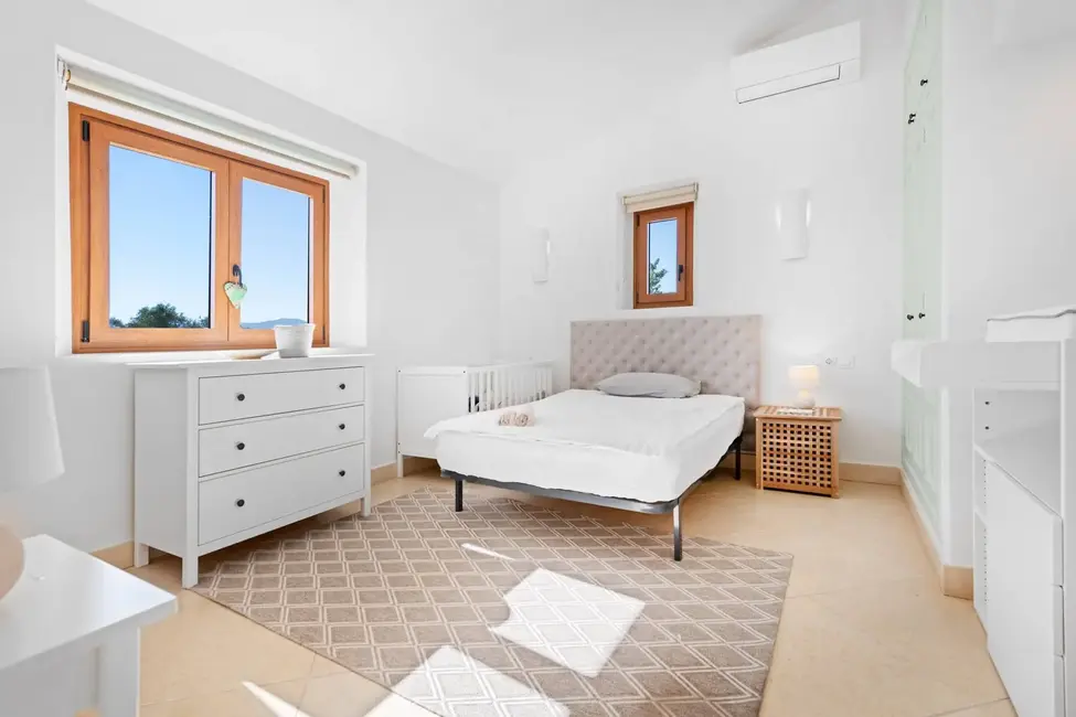 The stunning panoramic view of the Tramuntana mountains, the secluded location with no immediate neighbors, and the pleasant climate with refreshing breezes all year round make this finca a true retreat—a "happy place" in Mallorca.