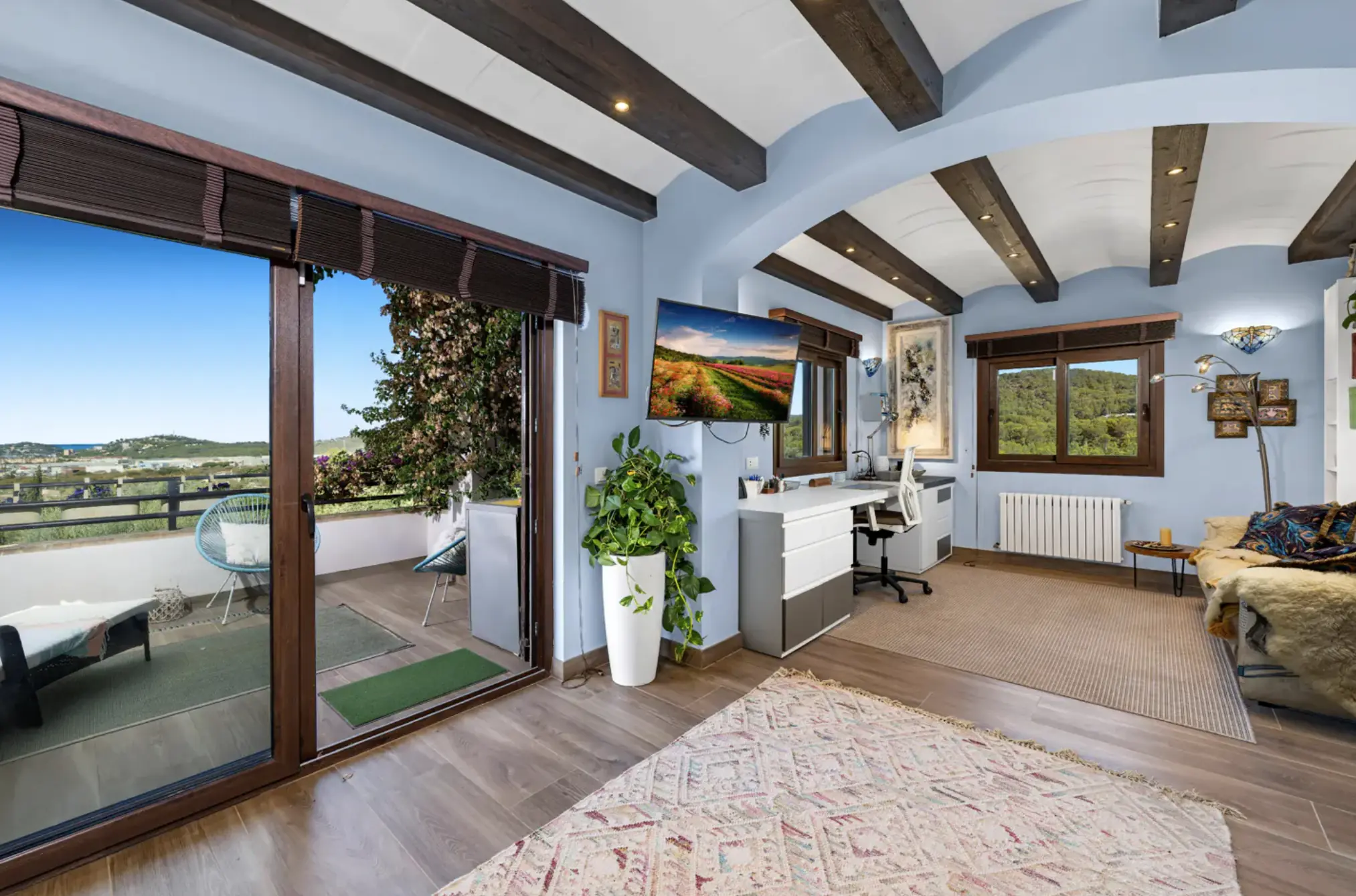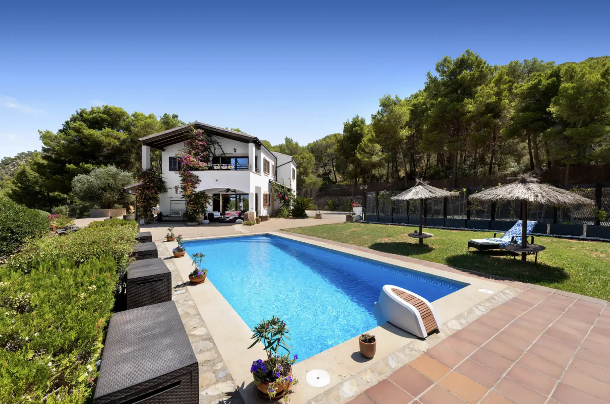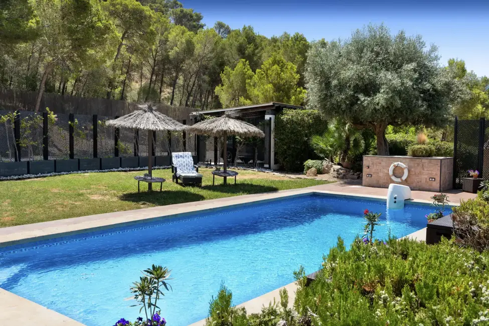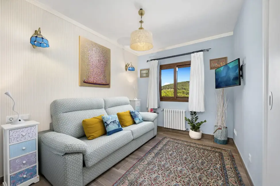 The finca extends over two floors and offers plenty of space for family and guests. The outdoor area is a highlight: the well-kept garden with pool and integrated counter-current system invites you to enjoy a vigorous swim or relax and sunbathe. Thanks to its south-facing orientation, you can enjoy the sun here all day long.