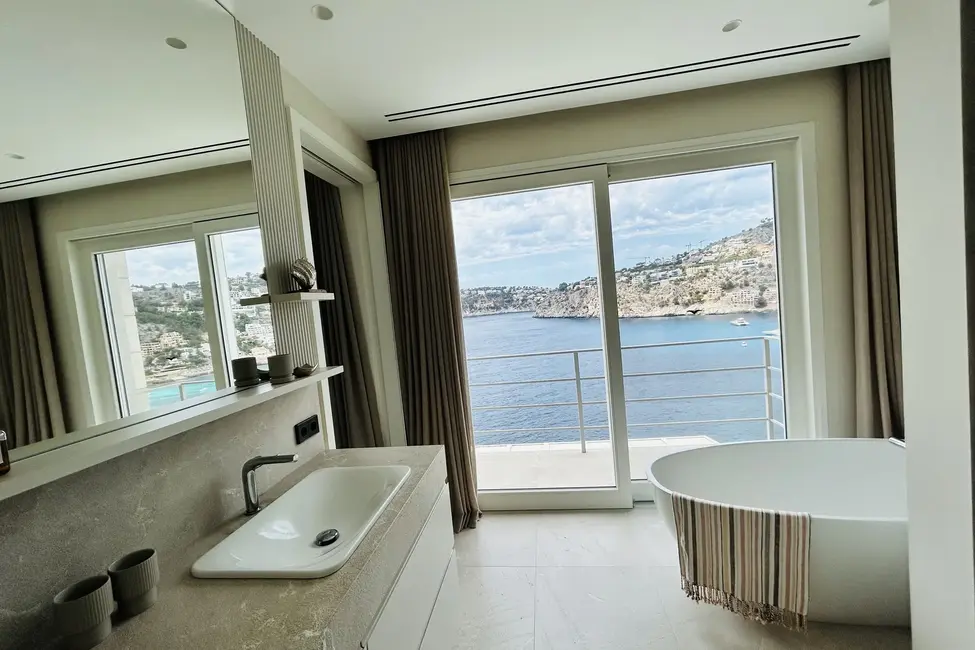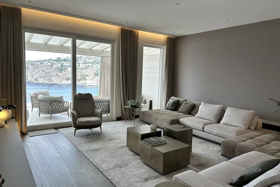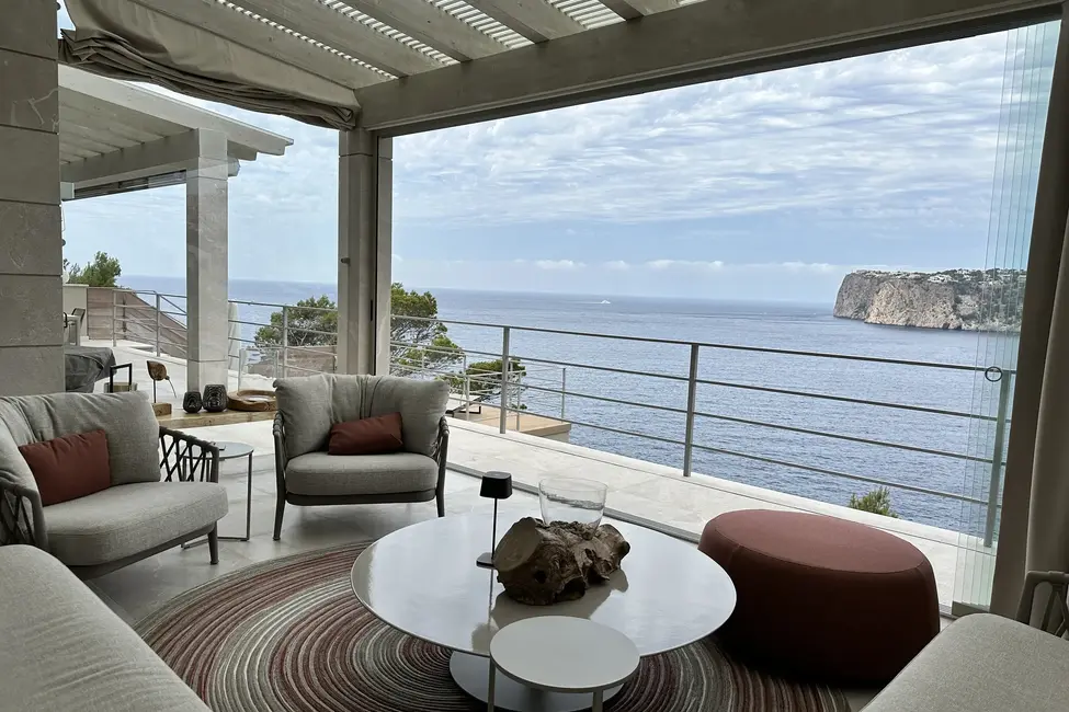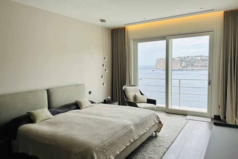 Esta impresionante y moderna casa familiar se encuentra en una ubicación privilegiada en la costa de Port Andratx. Se distribuye en tres plantas, todas ellas conectadas por un ascensor. La planta superior alberga dos suites principales y un dormitorio adicional, todos ellos con fantásticas vistas al mar. En la planta baja hay una moderna cocina abierta, una cocina de servicio independiente, una bodega abierta y un amplio comedor con acceso a la terraza. La terraza cuenta con una cocina de verano y una gran mesa de comedor. Además, hay una sala de estar independiente con una terraza que se puede abrir o cerrar con una pared de cristal, según sea necesario. En la planta baja también hay un dormitorio adicional con vestidor y baño en suite.