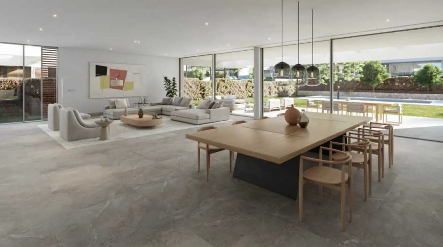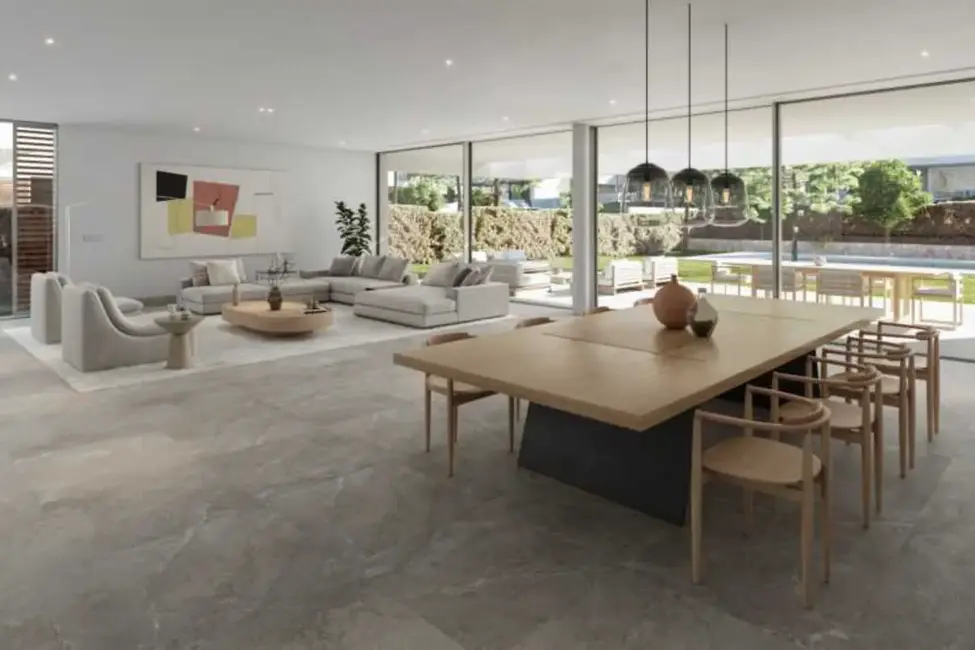 Materiales de alta calidad, como suelos de piedra caliza de gran formato en el interior y el exterior, ventanas de doble acristalamiento con aislamiento térmico y perfiles minimalistas, así como equipamiento técnico de última generación, convierten estas villas en viviendas de primera clase.
