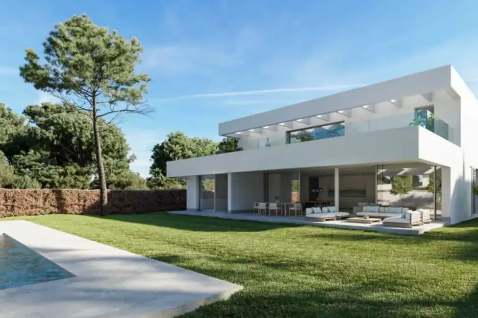 La planta superior alberga la suite principal con vestidor y terraza privada, así como otros tres dormitorios, todos con baño en suite y acceso a una terraza. Una sala de televisión adicional o un patio ofrecen aún más comodidad.