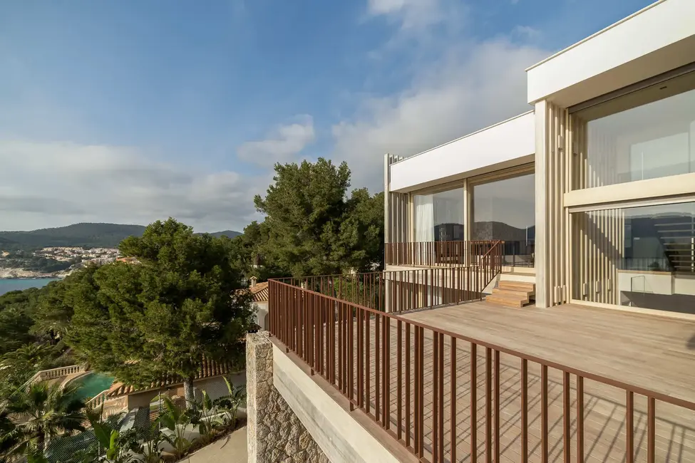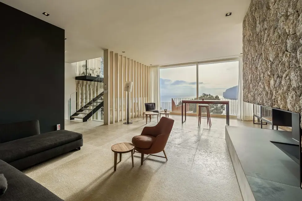 La villa está situada en una tranquila calle sin salida, junto a una zona verde sin obstáculos, lo que garantiza la máxima privacidad. Se terminó de construir en 2016, en colaboración con la diseñadora de interiores Aggi Bruch y con carpintería a medida de Nadal. El resultado es una vivienda elegante con comodidades modernas, sofisticación técnica y elegancia atemporal.