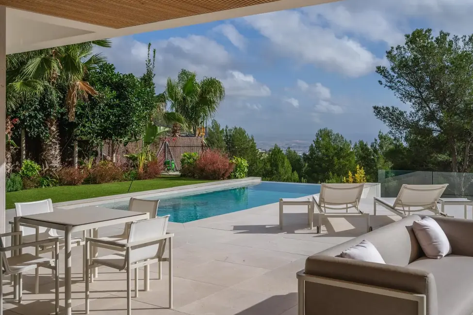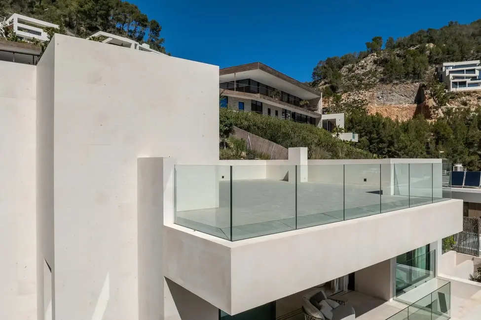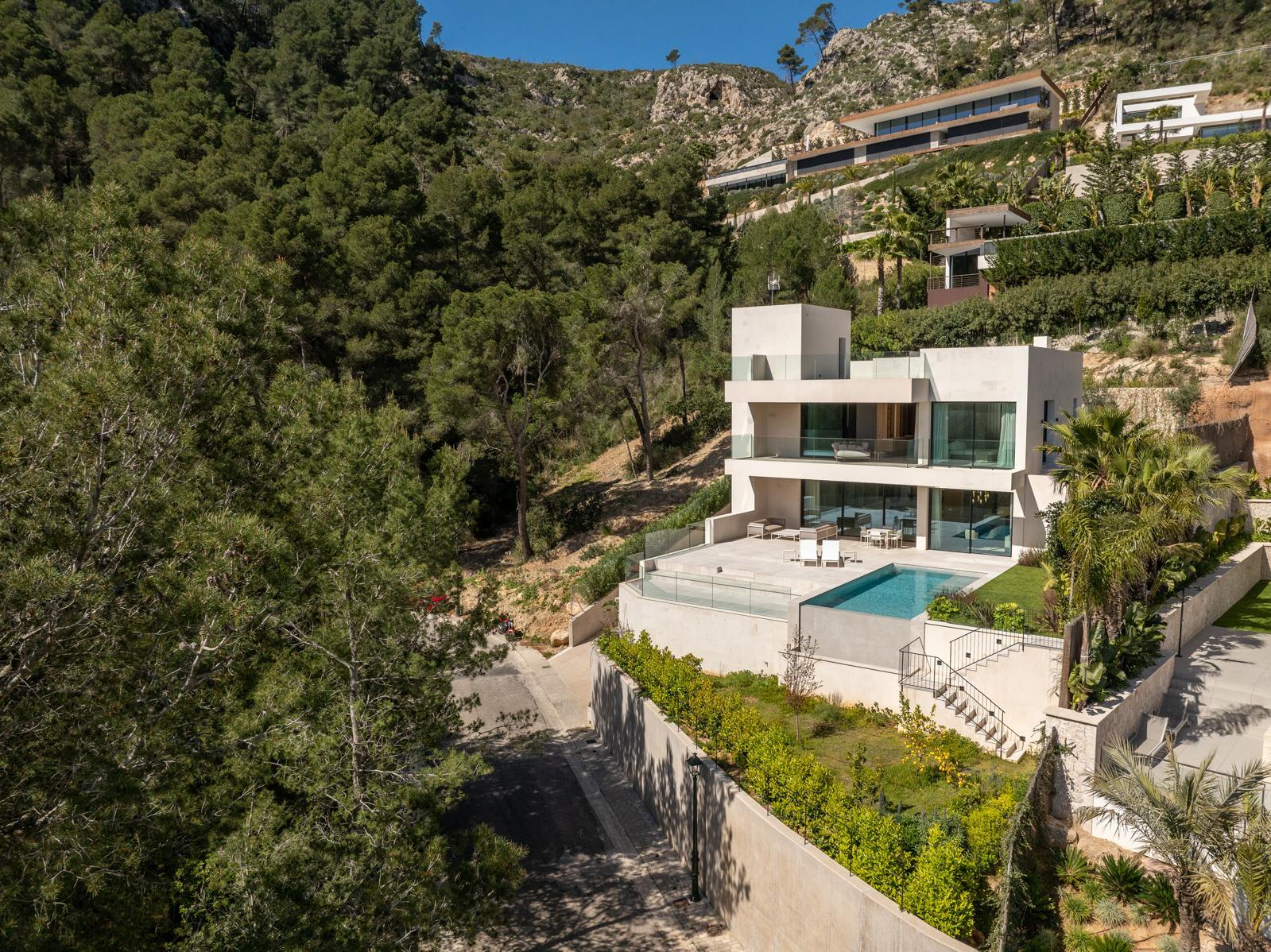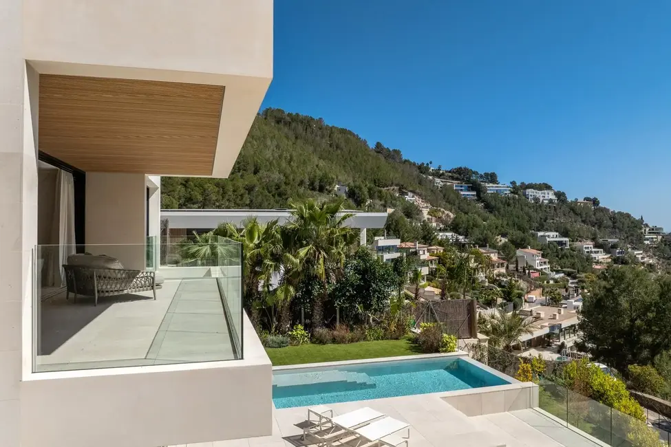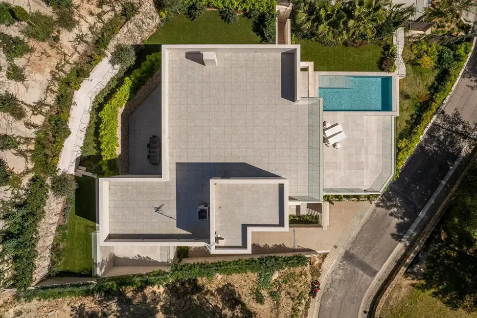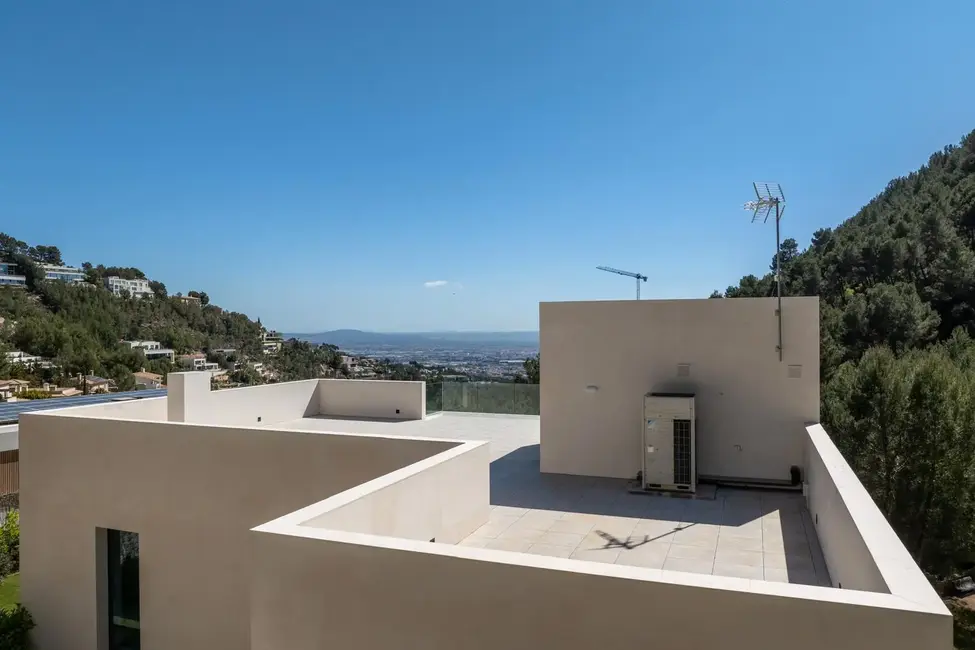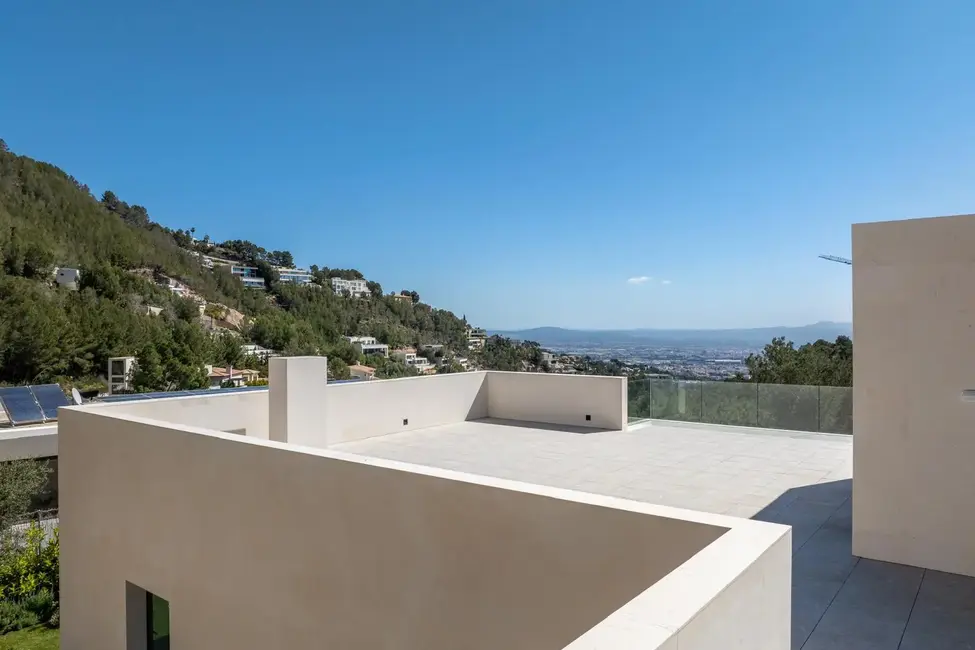 Esta excepcional villa de nueva construcción, construida en 2024, impresiona por su diseño claro y moderno, sus acabados de alta calidad y sus incomparables vistas panorámicas al paisaje circundante de Son Vida, una de las zonas residenciales más exclusivas de Mallorca. Situada en una parcela de aproximadamente 1000 m², la propiedad ofrece una generosa superficie habitable de unos 677 m², distribuidos en tres plantas.