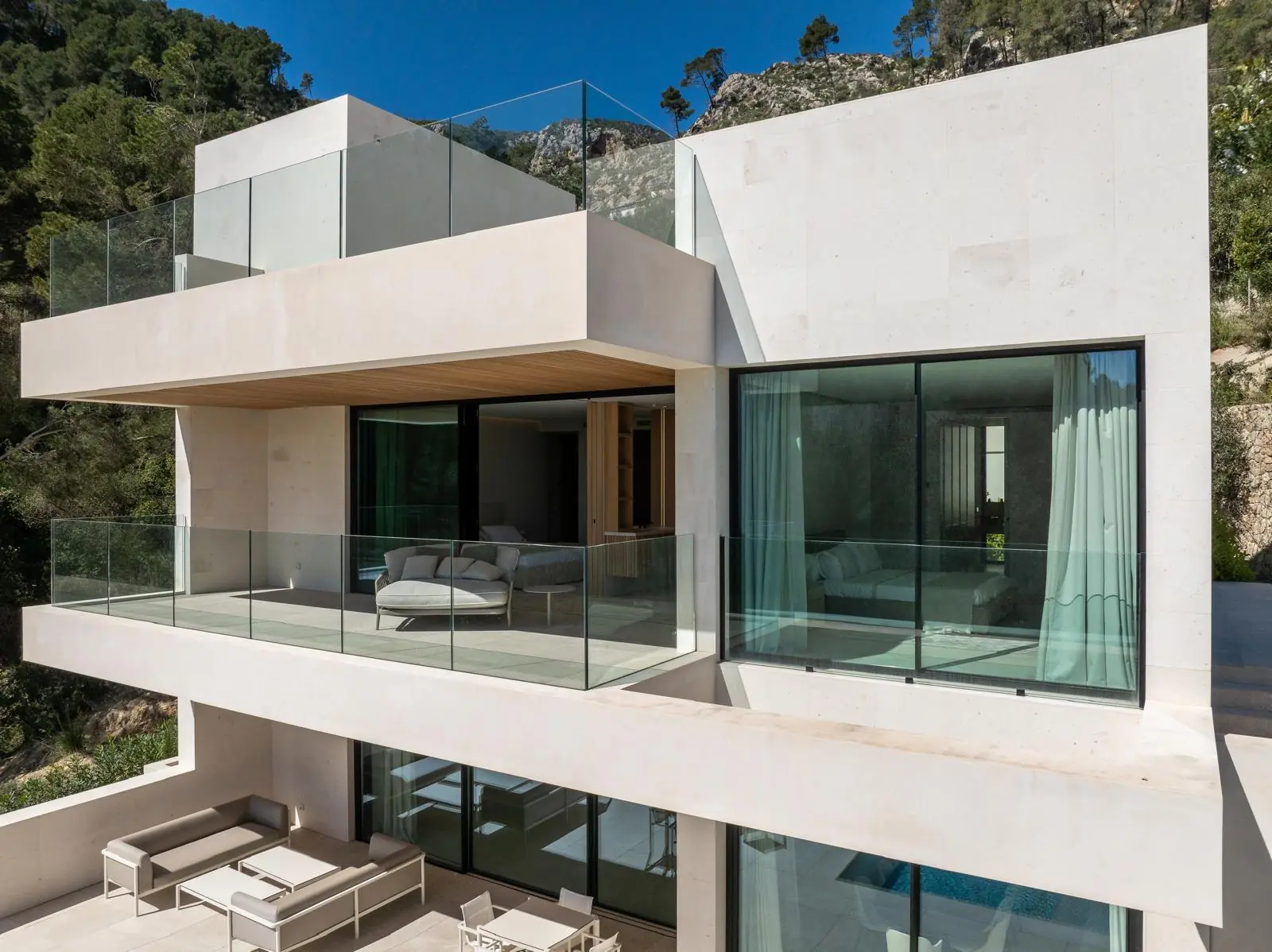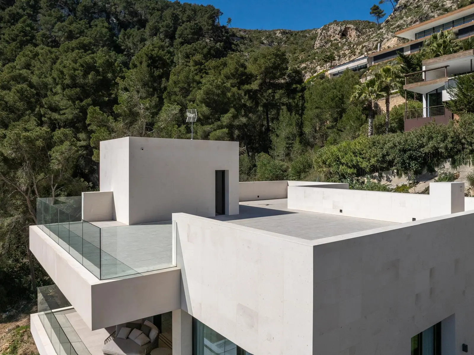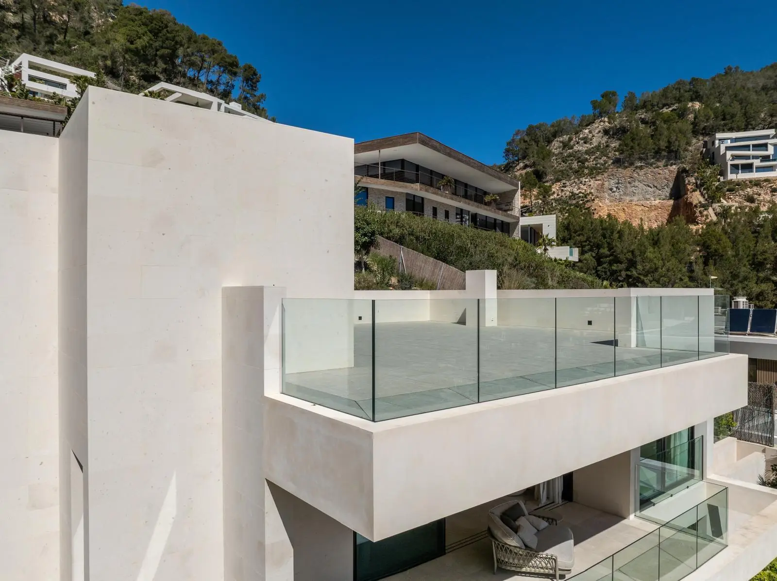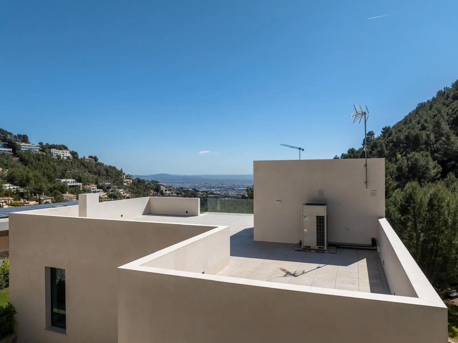 Esta excepcional villa de nueva construcción, construida en 2024, impresiona por su diseño claro y moderno, sus acabados de alta calidad y sus incomparables vistas panorámicas al paisaje circundante de Son Vida, una de las zonas residenciales más exclusivas de Mallorca. Situada en una parcela de aproximadamente 1000 m², la propiedad ofrece una generosa superficie habitable de unos 677 m², distribuidos en tres plantas.