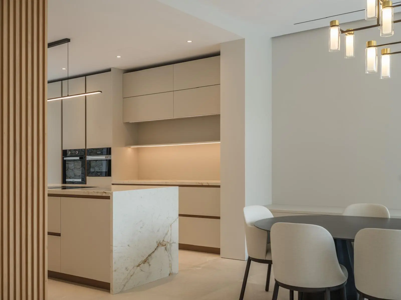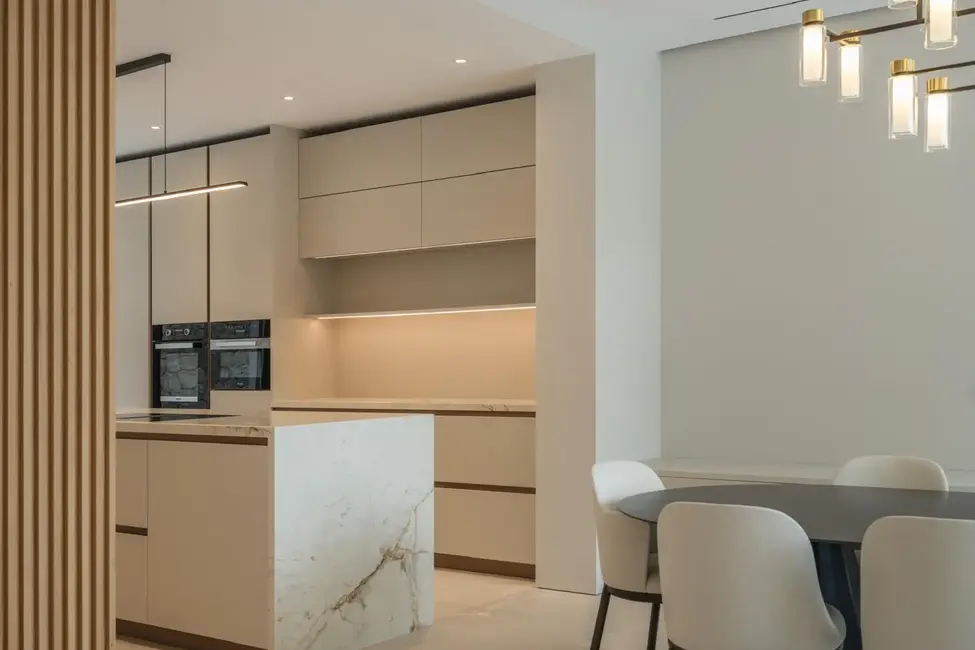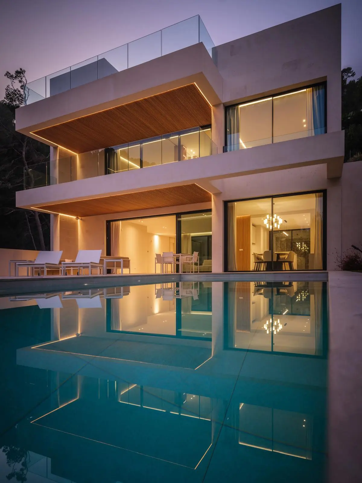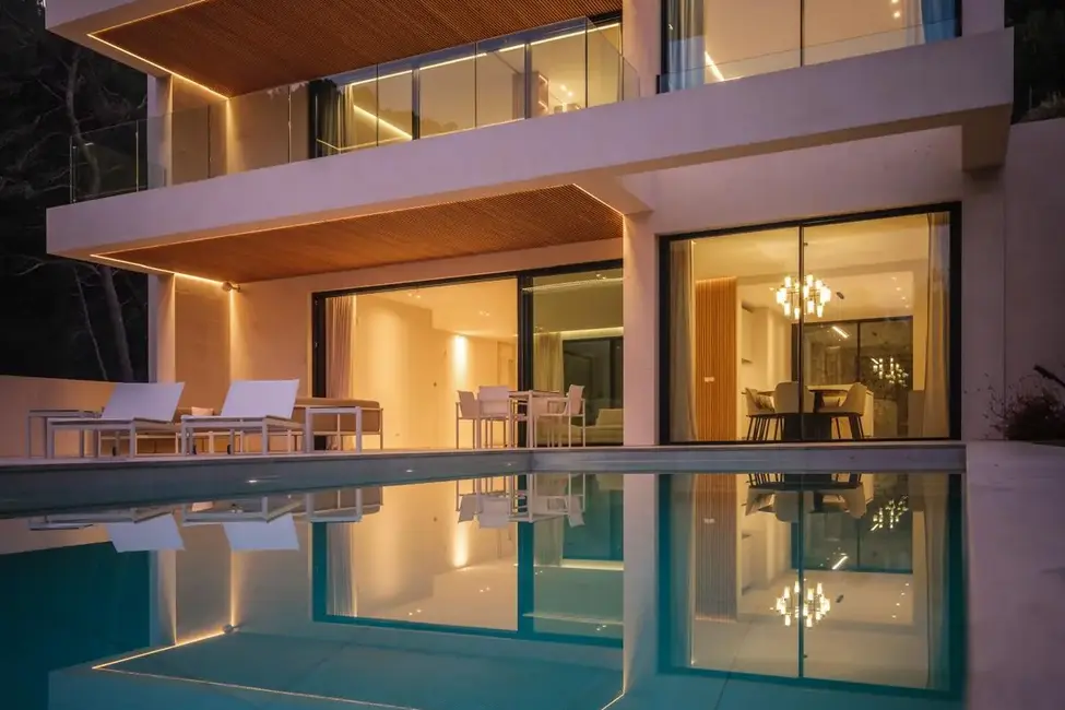 La sala de estar y el comedor de diseño abierto en la planta baja convencen con una lujosa cocina empotrada y una transición fluida a la amplia terraza cubierta, la elegante piscina y el cuidado jardín. En este mismo nivel también se encuentran un dormitorio con baño en suite, un aseo de invitados, un lavadero y un patio interior de diseño elegante que proporciona mucha luz natural.