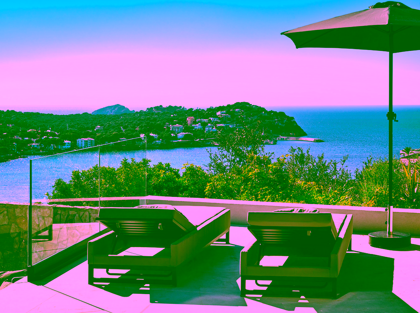 Descubra el mundo de las vacaciones de ensueño con esta villa única y de diseño vanguardista en Santa Ponsa. La villa se encuentra en una tranquila zona residencial. Las vistas panorámicas desde las colinas hasta el azul del mar Mediterráneo le fascinarán. Otro punto destacado de la casa son las diversas terrazas cubiertas y descubiertas, que ofrecen mucha privacidad y espacio para relajarse. Disfrute del sol o la sombra a cualquier hora del día en el jardín de estilo mediterráneo. La zona exterior, con una pintoresca terraza a lo largo de la casa, le da un toque romántico. La zona de la piscina, orientada al sur, con unas vistas impresionantes del mar y del paisaje circundante, es ideal para disfrutar de animadas barbacoas con amigos y familiares. La amplia zona interior de la propiedad se distribuye en dos plantas y cuenta con 4 dormitorios, cada uno con baño en suite, una cocina abierta y un salón-comedor muy luminoso con unas vistas inolvidables. Existe la posibilidad de crear fuera de la casa otro dormitorio completo con entrada independiente, ideal también para un gimnasio o una zona de oficina, y con unas vistas magníficas. Gracias a su excelente orientación al sol y sus magníficas vistas, la casa es perfecta como residencia de vacaciones para familias con niños y parejas que valoran la privacidad y las vistas al mar. En las inmediaciones encontrará actividades de ocio como golf, vela, natación y, para los más aventureros, un parque de cuerdas. La playa de arena de Santa Ponsa también se encuentra a poca distancia a pie. Características especiales: garaje para 2 vehículos, sistema de alarma, aire acondicionado, aseo de invitados, vitrina para vinos, sótano y calefacción por suelo radiante.