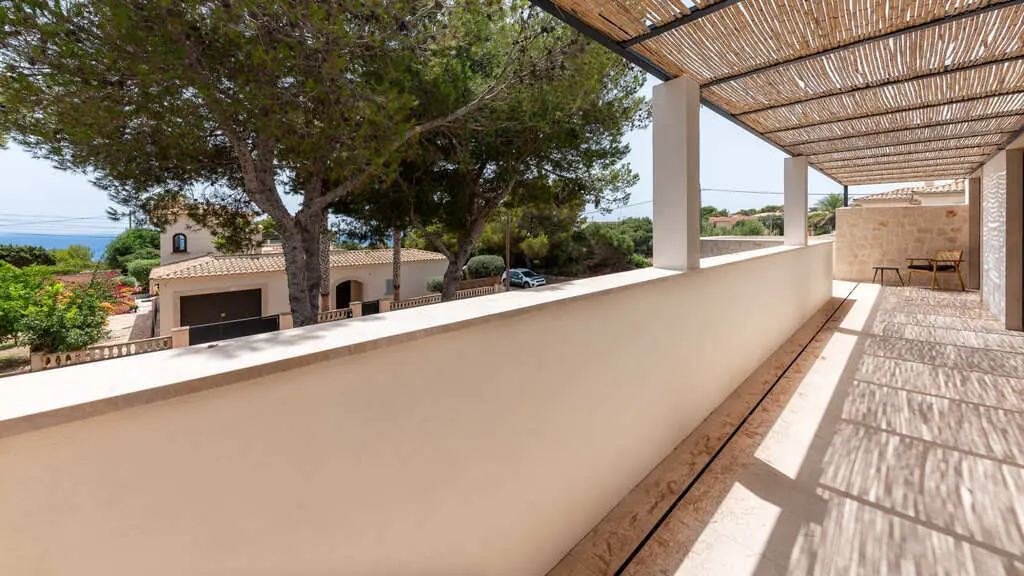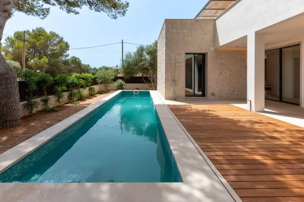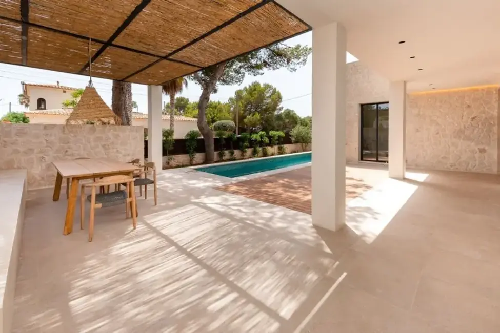 Terrazas: Pérgola cubierta y terraza abierta junto a la piscina, ideal para comer al aire libre con vistas.