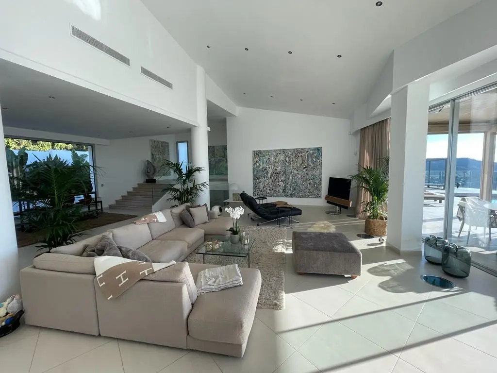 Esta exclusiva villa de ensueño, construida en 2015, se encuentra en la región suroeste y se alza sobre el pintoresco puerto de Port Andratx. Ofrece unas espectaculares vistas panorámicas del mar Mediterráneo y satisface las más altas exigencias de comodidad y lujo. Con una superficie total de 590 m² y una superficie habitable de 490 m² en una parcela de 1520 m², la propiedad impresiona por su generosa distribución y sus acabados de alta calidad. La villa cuenta con 6 habitaciones, 5 de ellas dormitorios, cada uno con su propio cuarto de baño en suite. Una amplia zona de estar con puertas acristaladas de techo alto conduce a la amplia terraza y conecta armoniosamente las zonas interiores y exteriores.