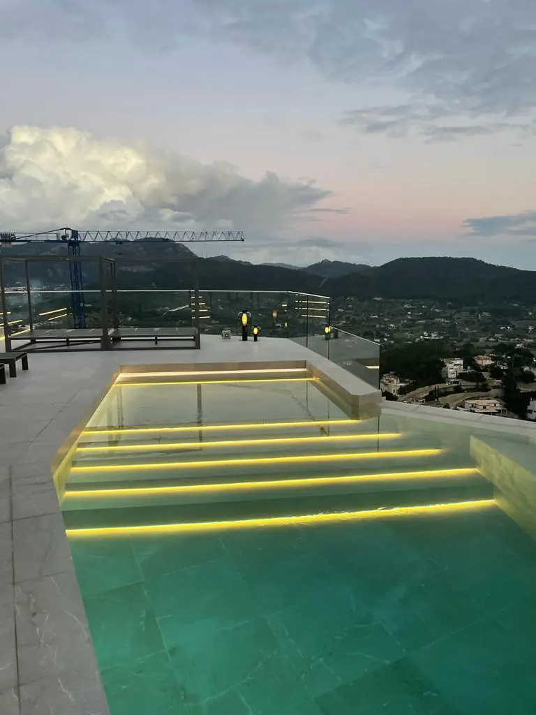 Cuenta con una cocina abierta de lujo integrada y equipada con la tecnología más moderna. La zona de bienestar es uno de los puntos fuertes e incluye un baño de vapor, una sauna y una piscina cubierta con sistema de contracorriente. La zona exterior también tiene un diseño exquisito: además de una amplia terraza, hay una piscina con jacuzzi y una azotea que invita a tomar el sol. La villa está perfectamente diseñada para ofrecer una alta calidad de vida y es un fantástico refugio con ambiente mediterráneo.