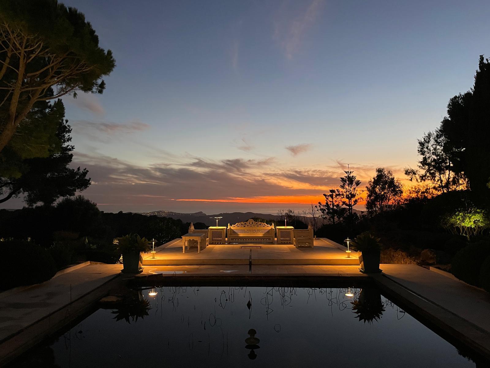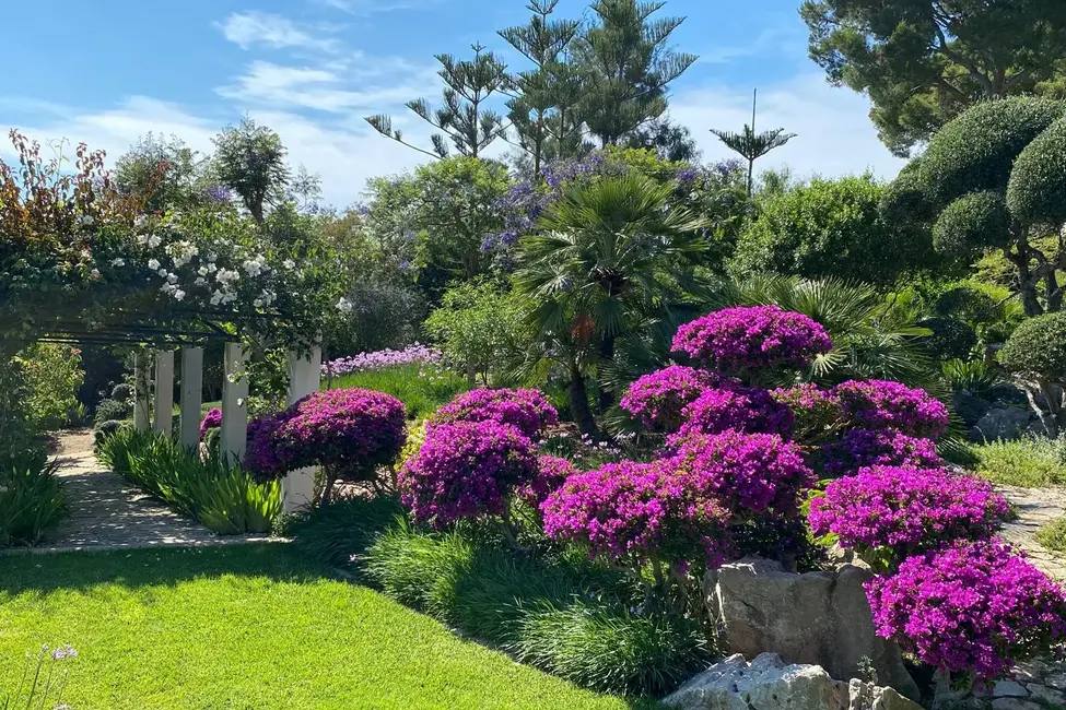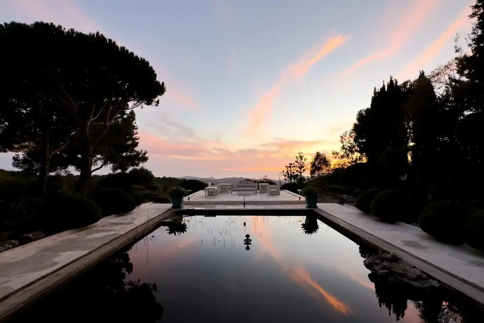 La zona exterior impresiona con amplias terrazas, un jardín de estilo mediterráneo, una piscina con sistema de natación contracorriente y numerosos rincones para relajarse. Una cocina de verano y un huerto completan la oferta y convierten la propiedad en un refugio perfecto para los más exigentes.