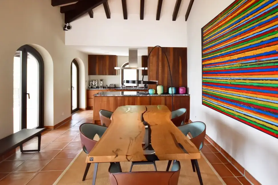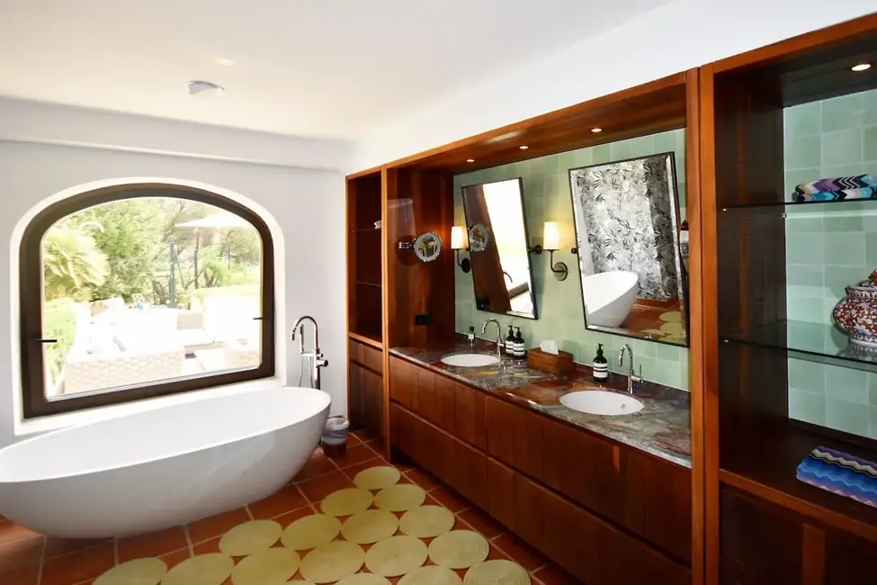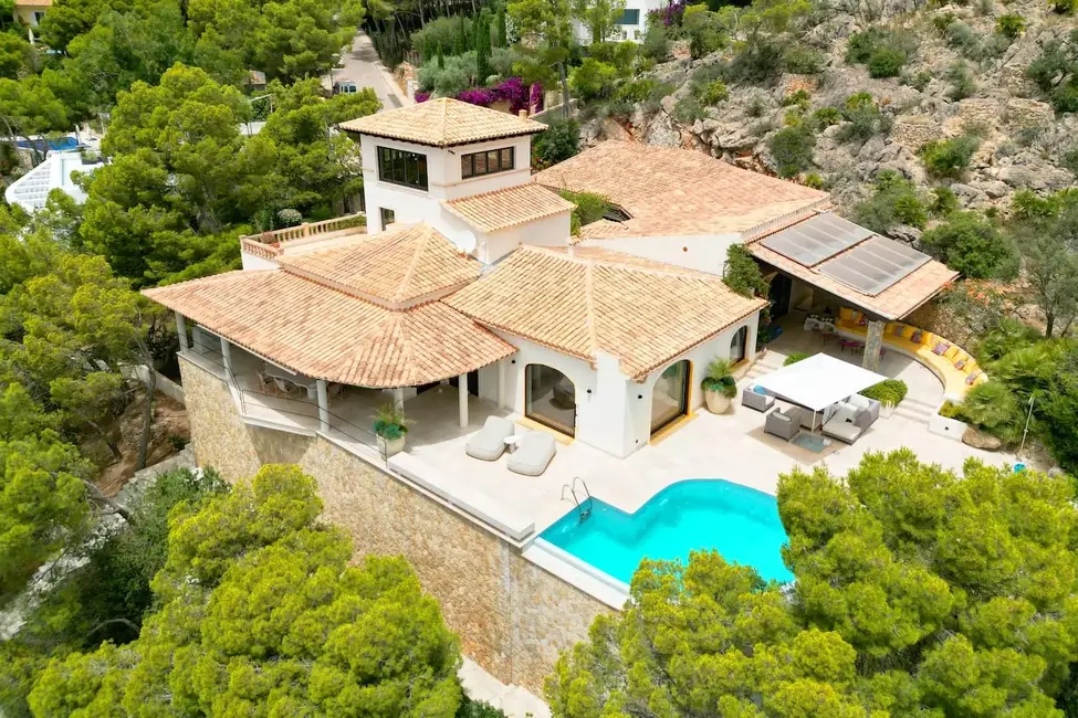 La villa tiene una superficie construida de aproximadamente 452 m². En la planta baja hay una cocina totalmente equipada con lavadero, una amplia sala de estar y un comedor con techos altos. Además del dormitorio principal, hay dos suites independientes para invitados en esta planta. Hay otra suite para invitados en la planta superior. La luminosa habitación de la torre, situada en la segunda planta, ofrece unas vistas espectaculares y puede utilizarse como despacho o como dormitorio adicional.