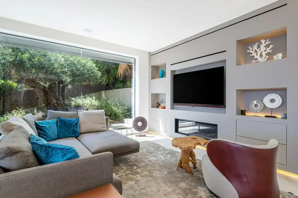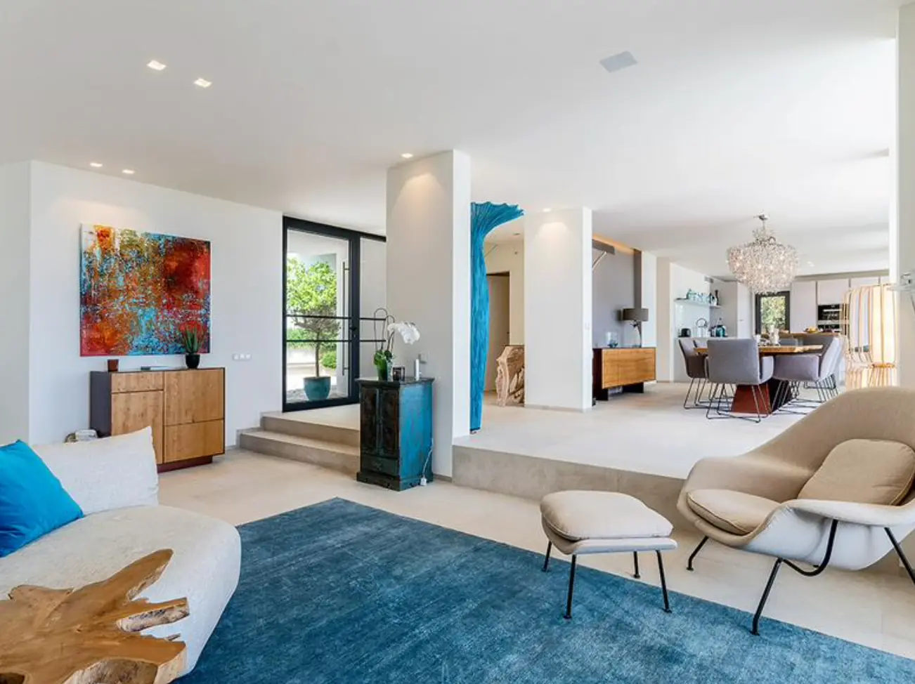 La villa también cuenta con un amplio garaje, calefacción por suelo radiante, aire acondicionado central y una zona de spa con sauna. Las ventanas y puertas Schüco, así como un sistema Sonos de 13 zonas, completan esta lujosa oferta.