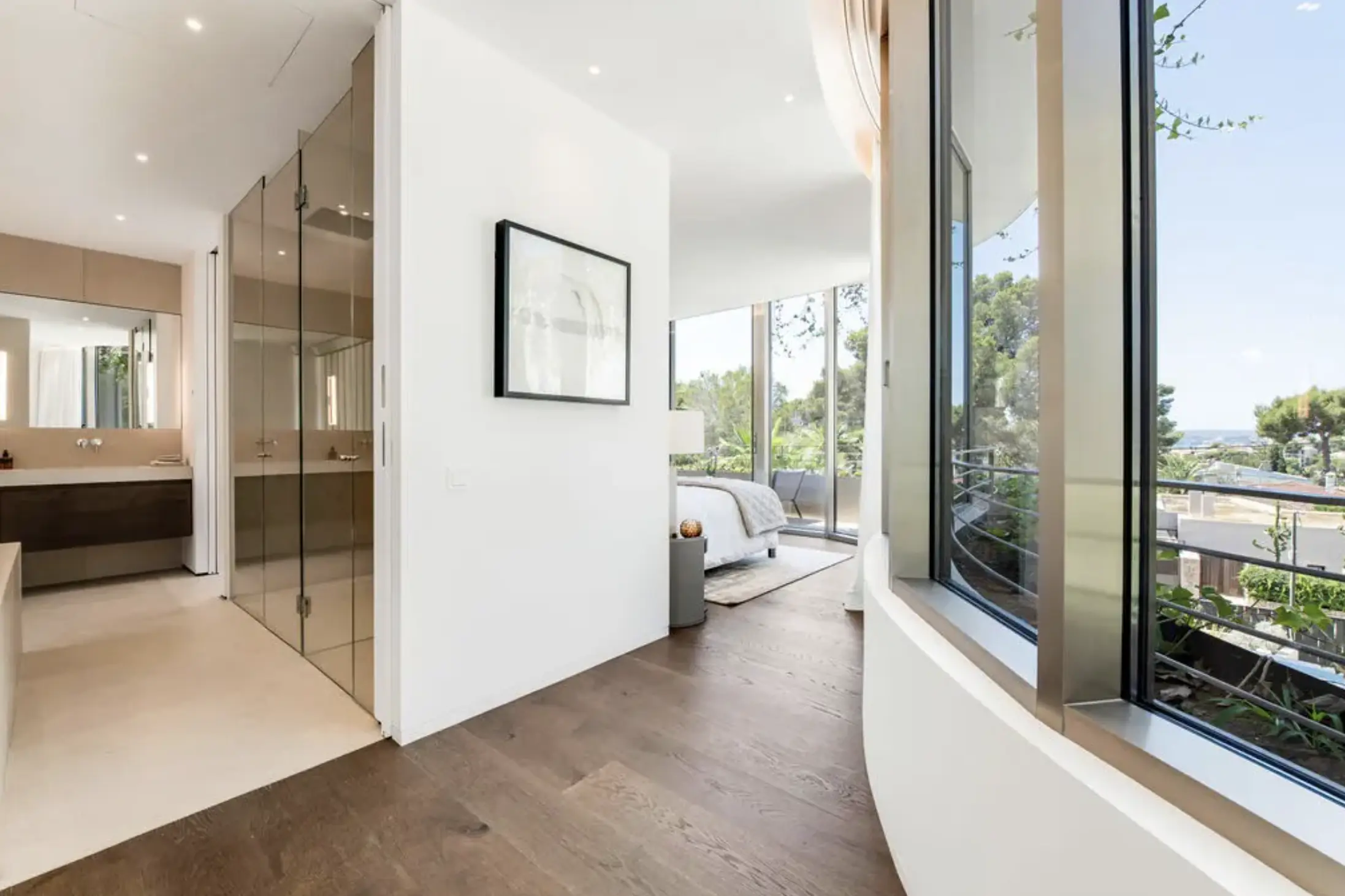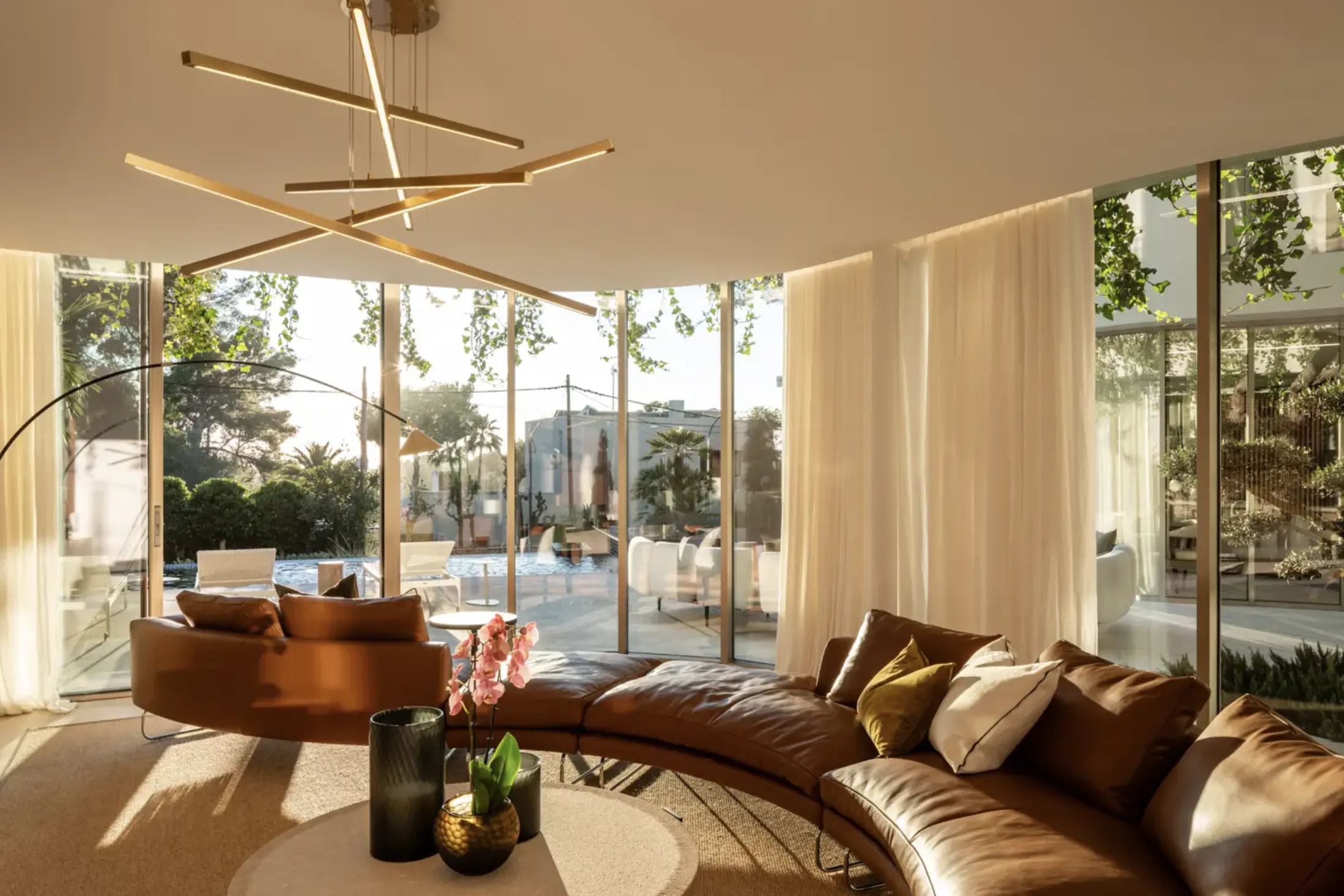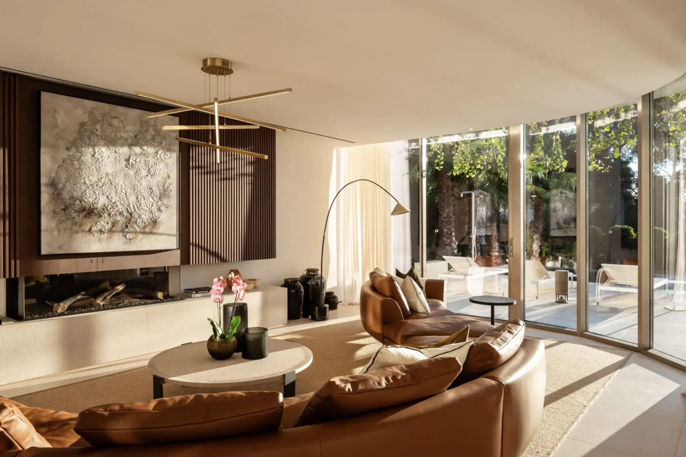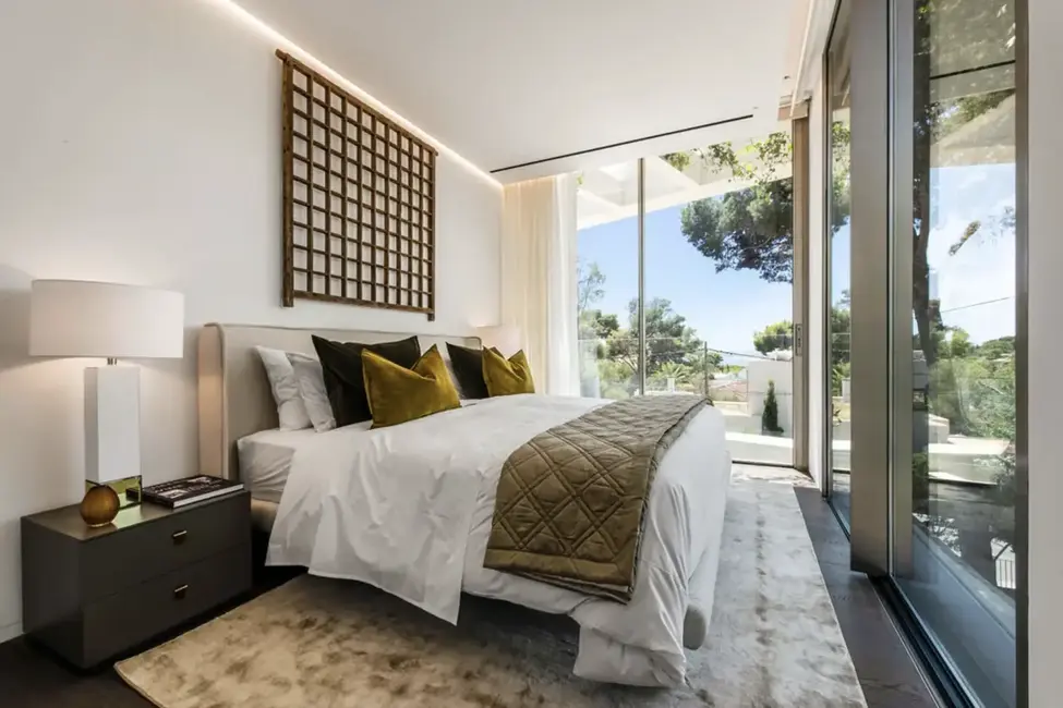 La arquitectura de esta villa construida en 2023 impresiona por sus líneas claras y sus habitaciones luminosas. Desde la impresionante zona de entrada con techo doble altura se accede al salón-comedor diáfano con chimenea, que gracias a sus ventanas de suelo a techo crea una conexión perfecta con la amplia terraza y la zona de la piscina.