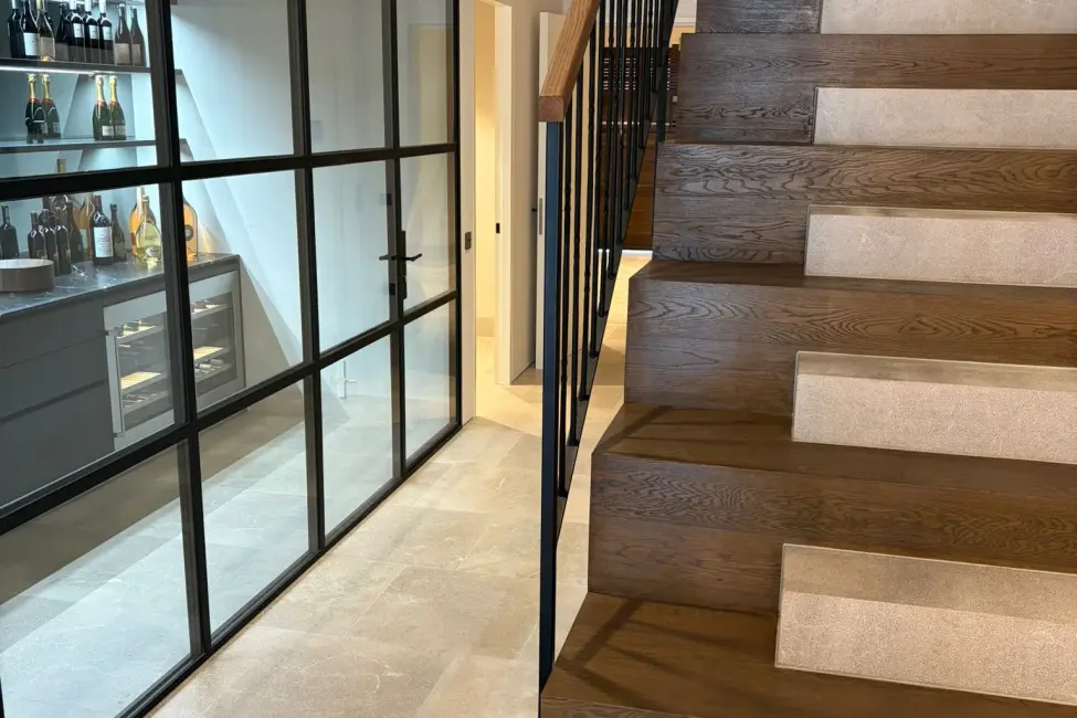 - hochwertige Natursteine, Echtholz und individuell gefertigte Einbauten