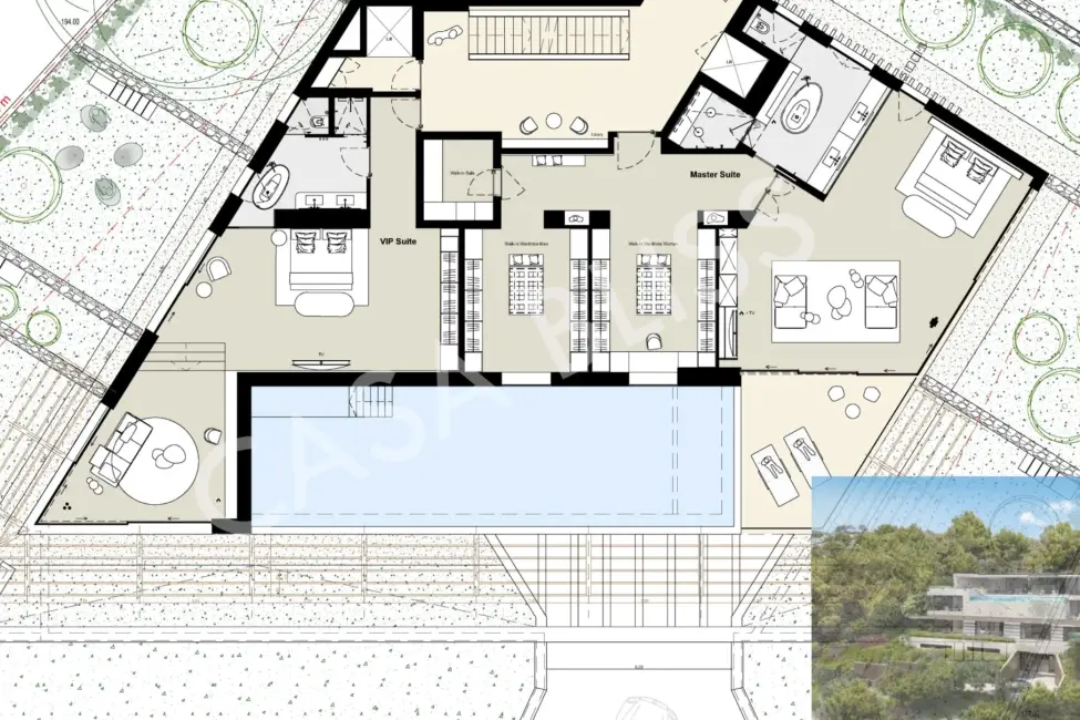 Mit der Casa Bliss entsteht in einer der begehrtesten Lagen Mallorcas – Son Vida – eine außergewöhnliche Luxusvilla, die moderne, zeitlose Architektur mit innovativer Technik, kompromissloser Sicherheit und maximalem Wohnkomfort vereint. Das genehmigte Projekt wurde so konzipiert, dass Architektur stets den Blick rahmt – ein klares Bekenntnis zur Lage mit freier Ausrichtung auf die Bucht von Palma.