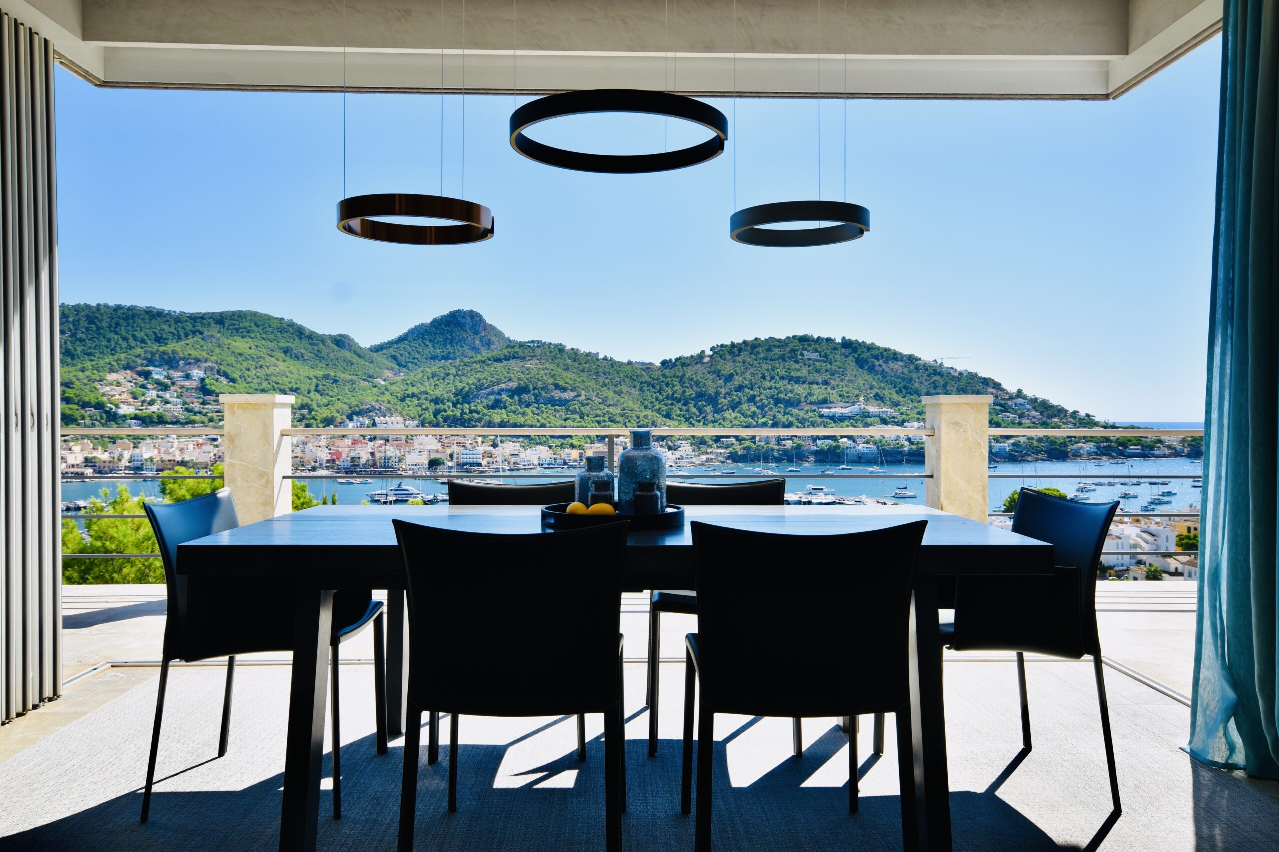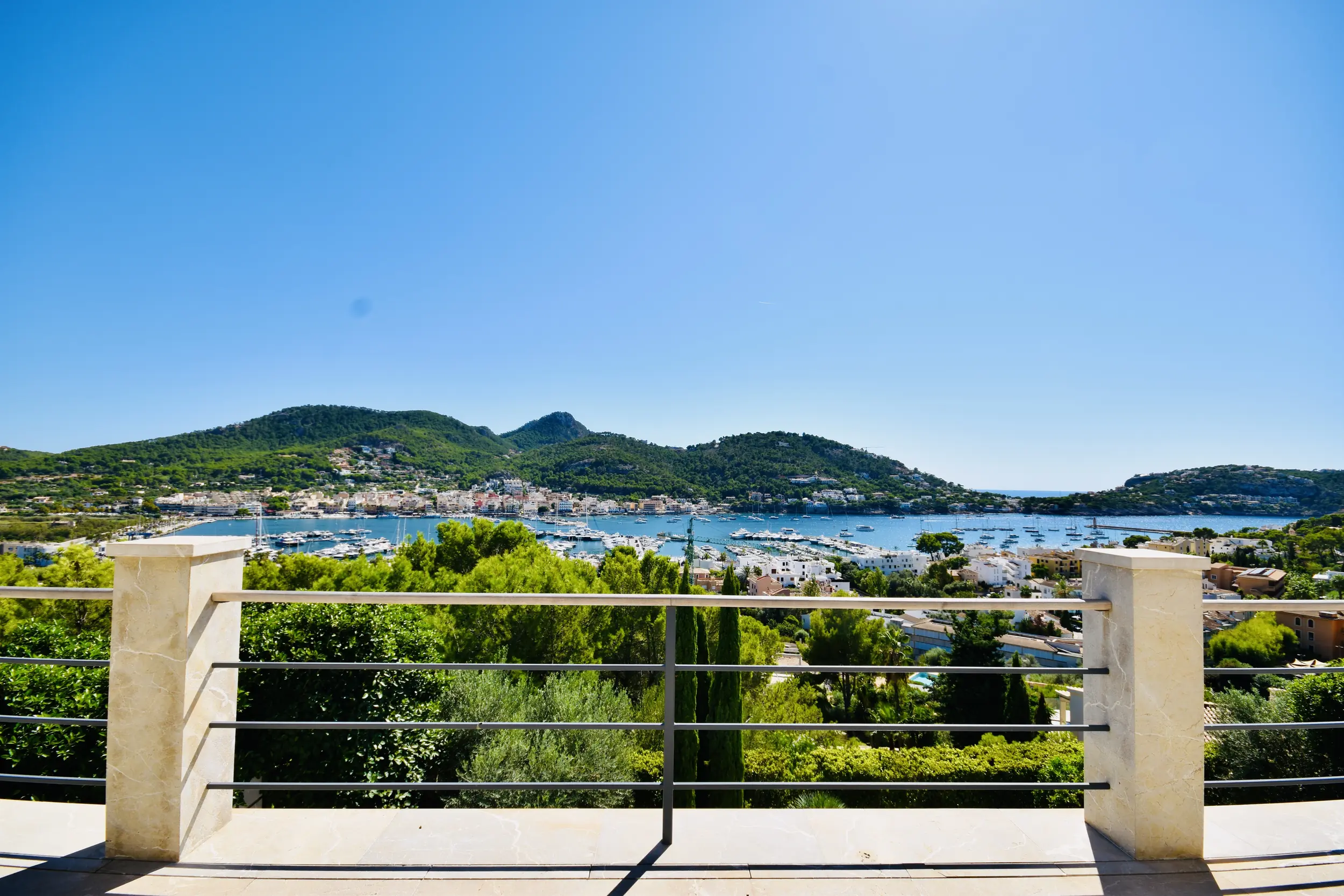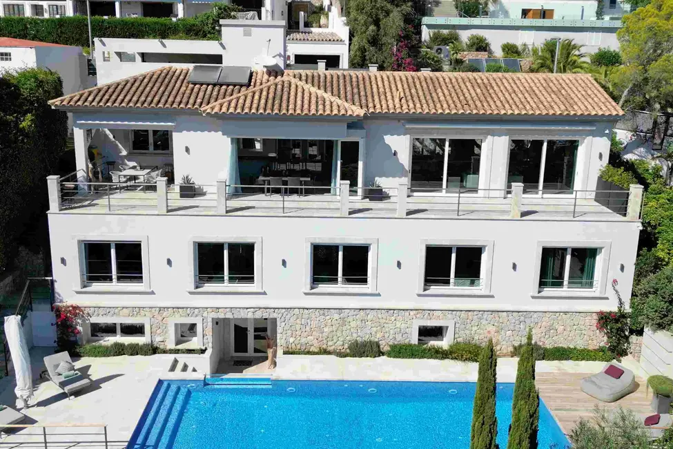 Diese zeitgenössische Residenz, die einen unvergleichlichen Meeres- und Hafenblick bietet, liegt abgeschieden in einer stillen Sackgasse über dem Hafen von Andratx. Port Andratx, ein angesehener Fischer- und Yachthafen, befindet sich im luxuriösen Südwesten Mallorcas. Das Gebäude wurde unter Verwendung hochmoderner Materialien errichtet und präsentiert sich mit stilvollen und qualitativ hochwertigen Möbeln sowie Ausstattungen. Mit nahezu 400 m² Wohnfläche erstreckt sich die Villa über drei Ebenen und offeriert jede Menge Raum.