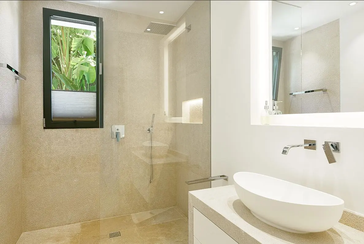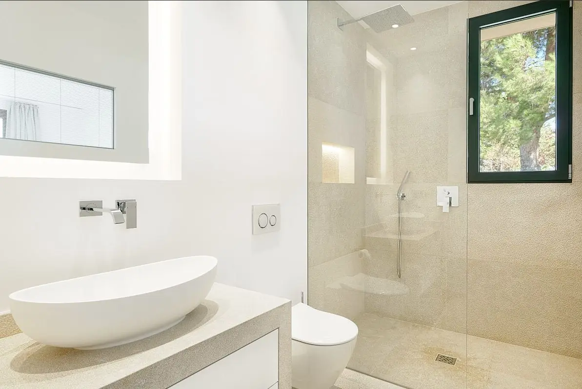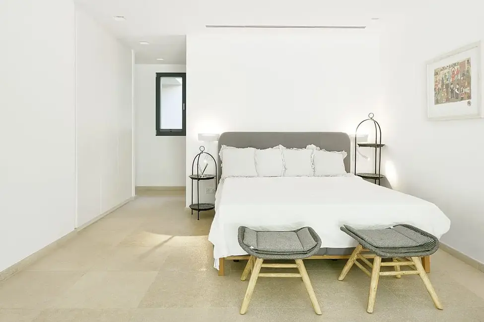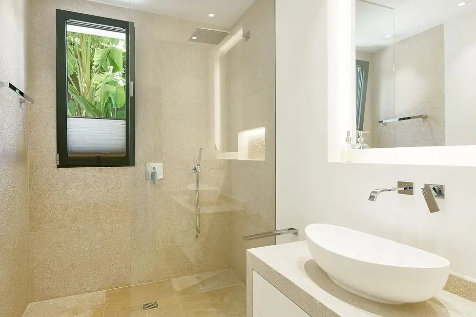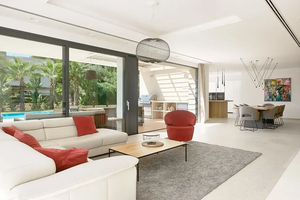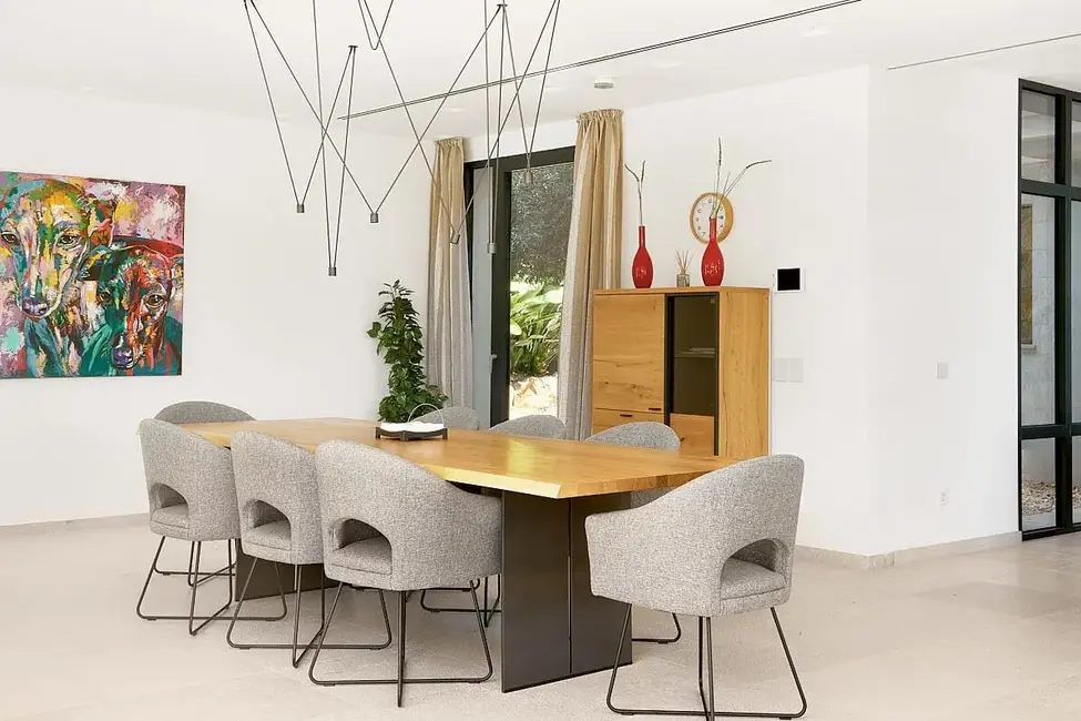 Die Villa verfügt über fünf elegant gestaltete Schlafzimmer sowie fünf hochwertig ausgestattete Badezimmer. Ein separates Gästezimmer mit eigenem Zugang bietet ideale Rückzugsmöglichkeiten für Besucher. Die Premium-Küche mit Kochinsel, modernsten Geräten und Osmoseanlage erfüllt höchste kulinarische Ansprüche.