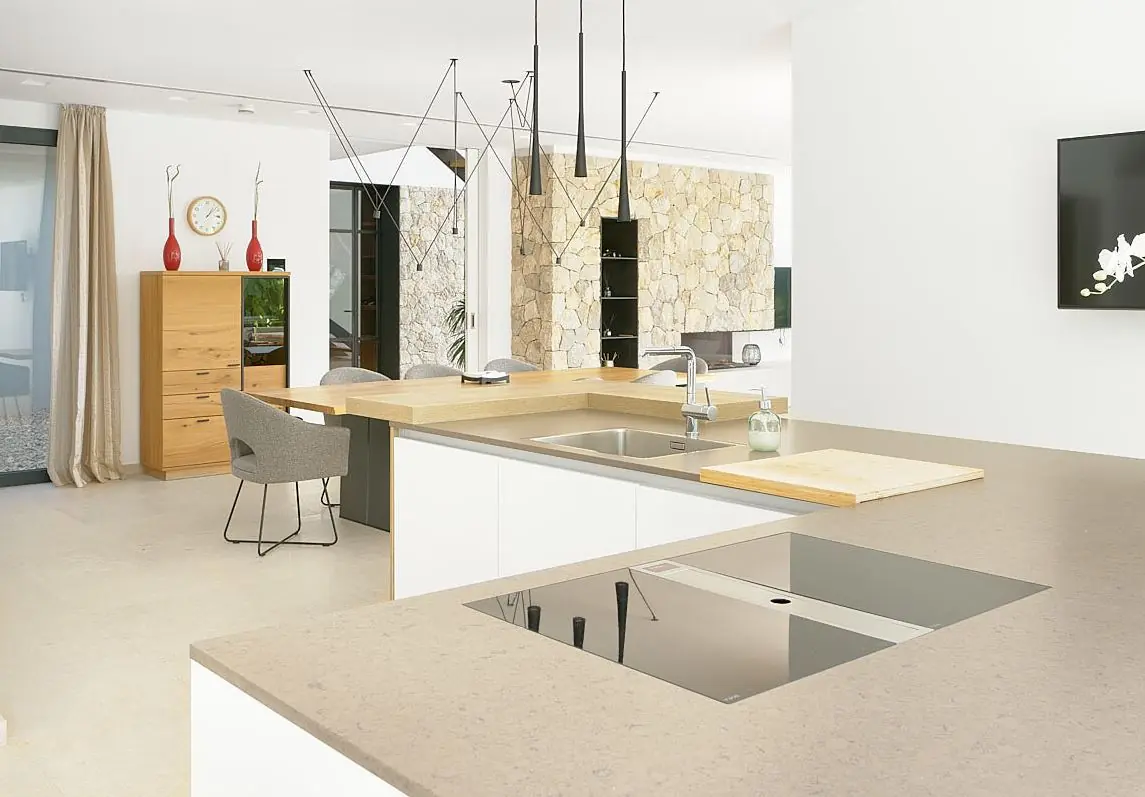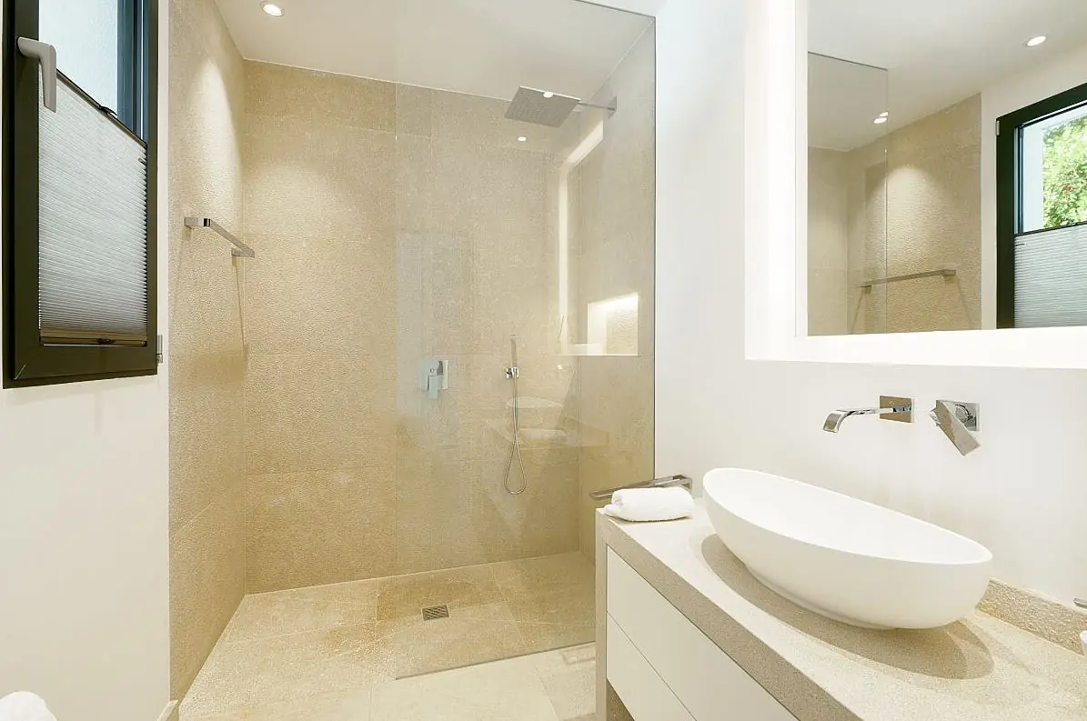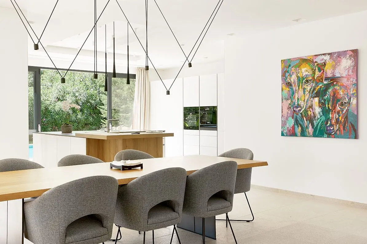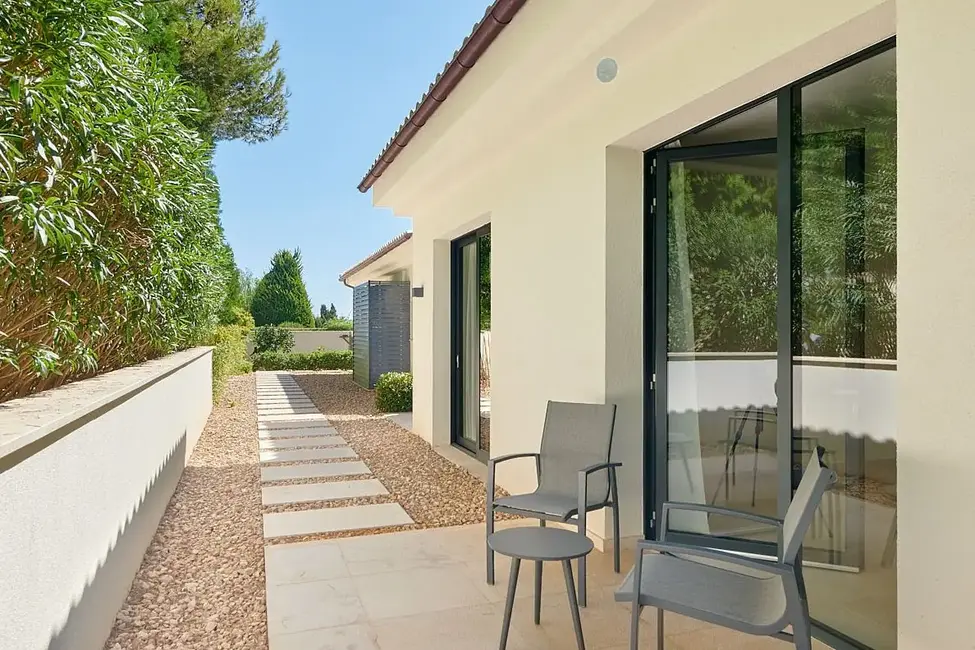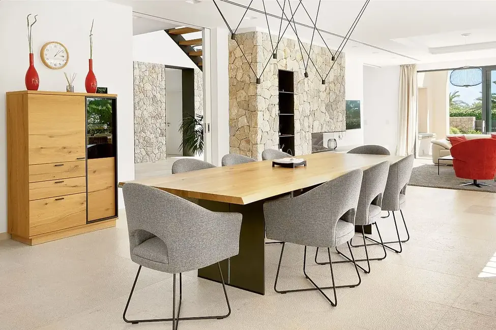 Die Villa verfügt über fünf elegant gestaltete Schlafzimmer sowie fünf hochwertig ausgestattete Badezimmer. Ein separates Gästezimmer mit eigenem Zugang bietet ideale Rückzugsmöglichkeiten für Besucher. Die Premium-Küche mit Kochinsel, modernsten Geräten und Osmoseanlage erfüllt höchste kulinarische Ansprüche.