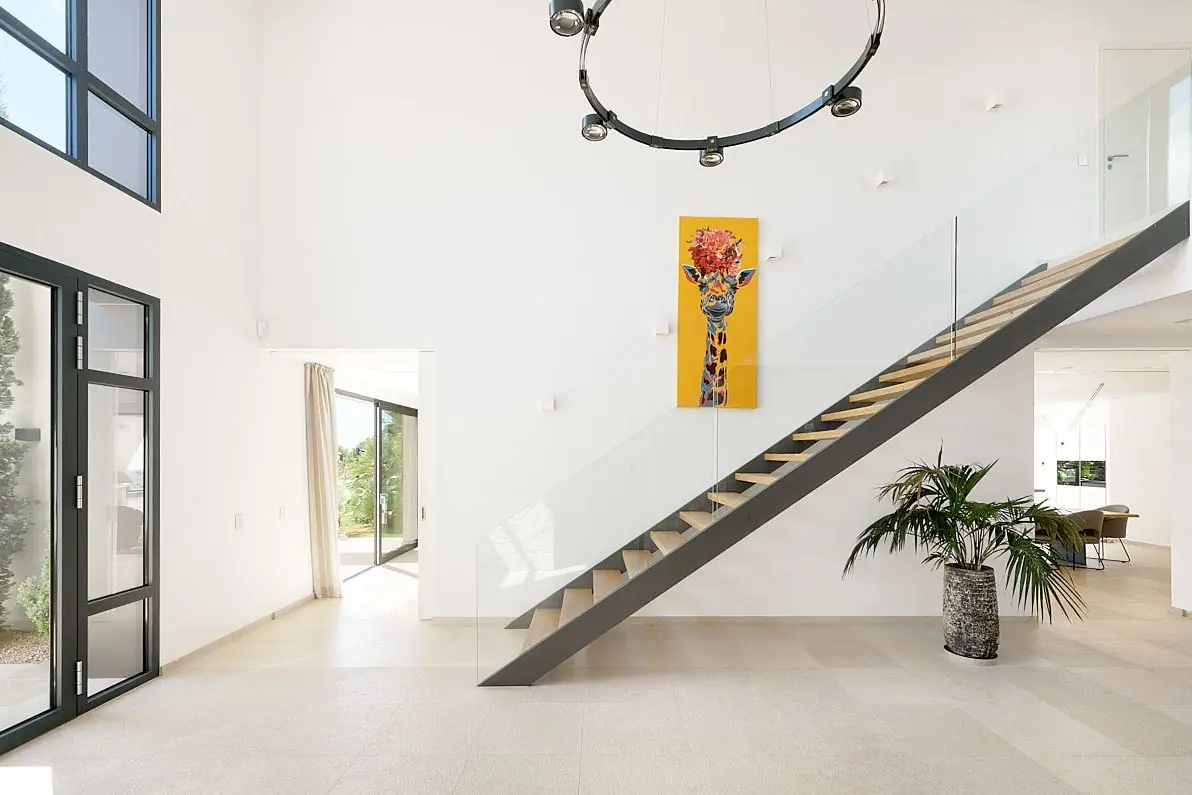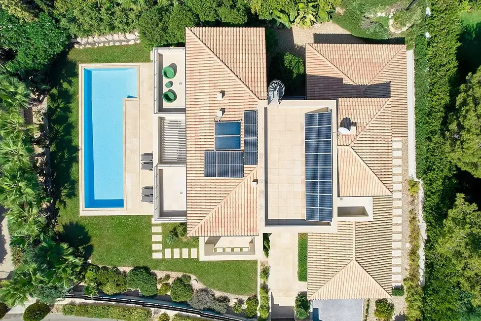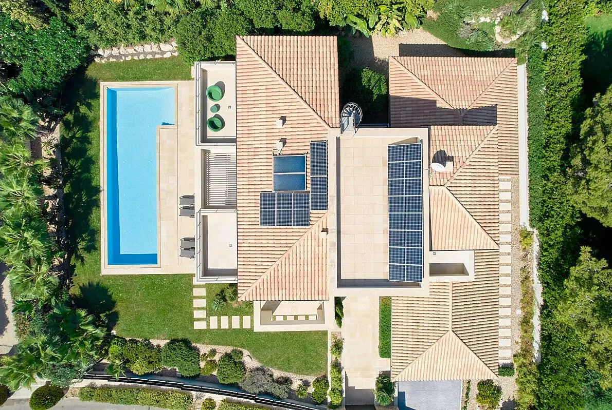 Technisch lässt diese Villa keine Wünsche offen: Fußbodenheizung mit Luftwärmepumpe, Klimaanlage warm/kalt im gesamten Haus, Photovoltaikanlage, Alarmanlage mit Kameras – alles auf einem exzellenten technischen Niveau. Eine Doppelgarage mit Ladestation für Elektroautos rundet den Komfort ab.