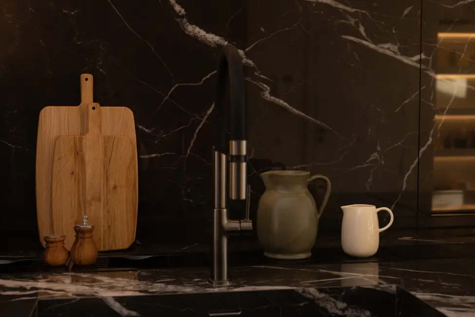 Hochwertige, maßgefertigte Designer-Küche mit AEG-Geräten inkl. Weinkühlschrank
