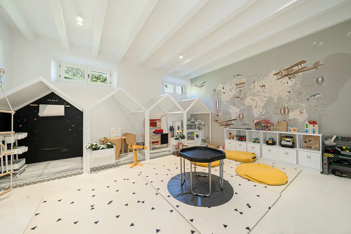 Für Entspannung und Freizeitvergnügen sorgen der beheizte Pool, eine Sauna, ein voll ausgestatteter Fitnessraum sowie ein privates Heimkino. Mehrere überdachte Terrassen und Lounge-Bereiche laden zum Genießen sonniger Tage oder lauer Abende mit Familie und Freunden ein.
