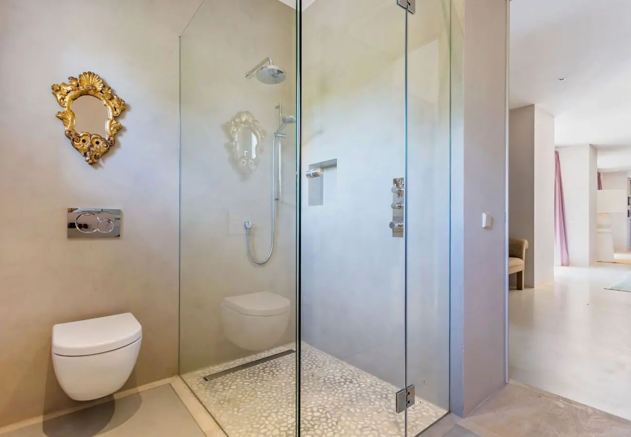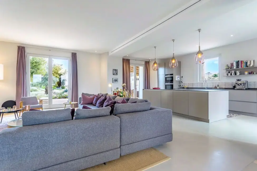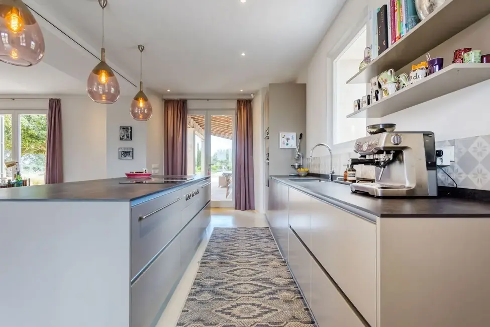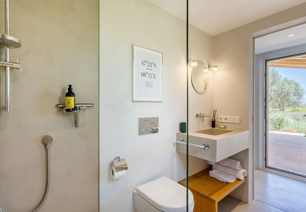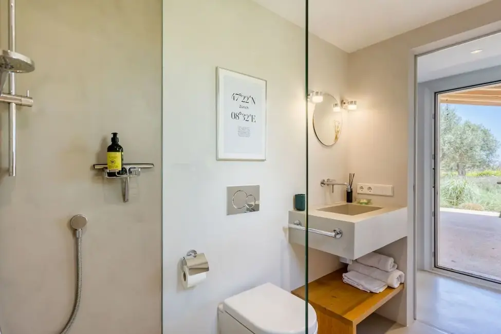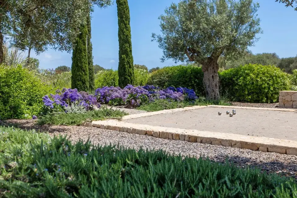 Im Außenbereich erwartet Sie mediterranes Lebensgefühl pur: ein Salzwasserpool (53 m²) mit komfortabler Einstiegstreppe, mehrere überdachte und offene Terrassen, eine Feuerstelle, Sauna, Boulebahn, ein Olivenhain mit Hängematten sowie zahlreiche Rückzugsorte. Das separate Gästehaus am Pool verfügt über ein eigenes Duschbad, Fußbodenheizung, Klimaanlage und Internet – perfekt für Familie oder Freunde.