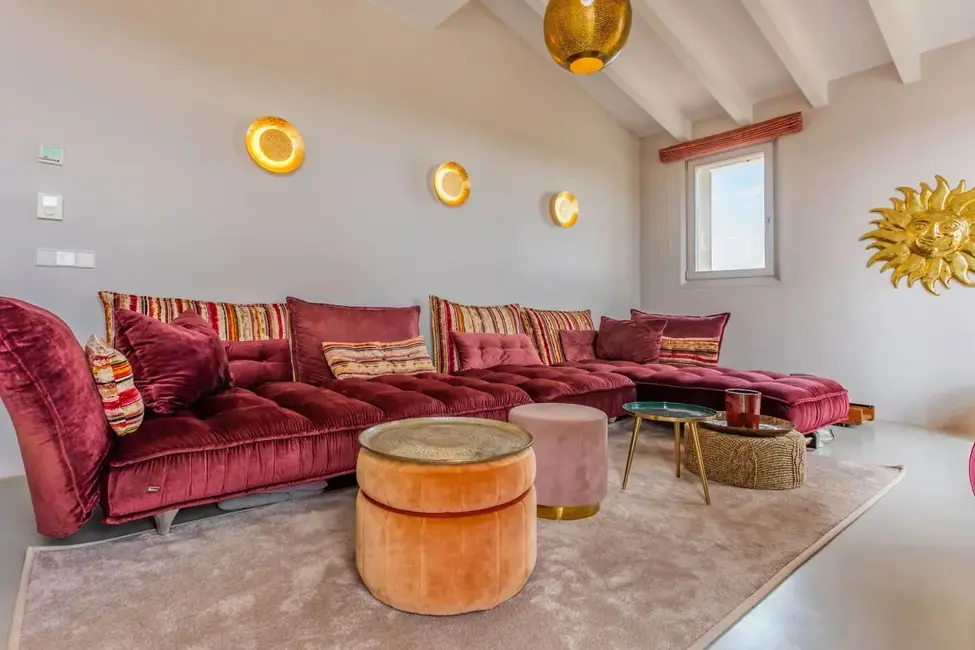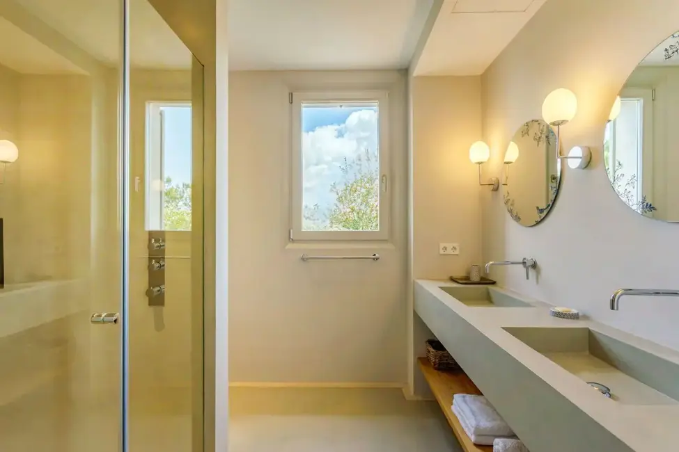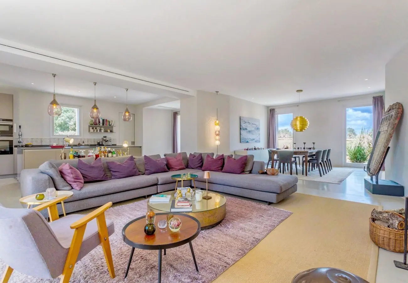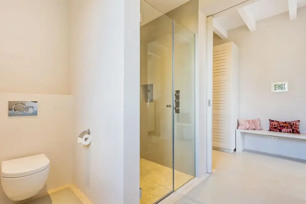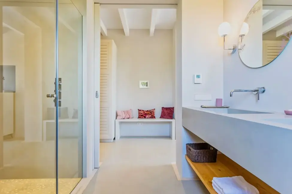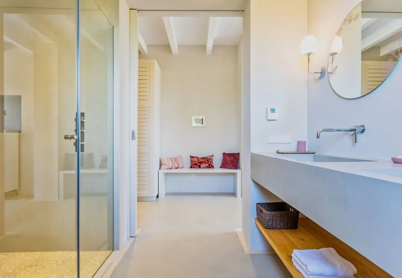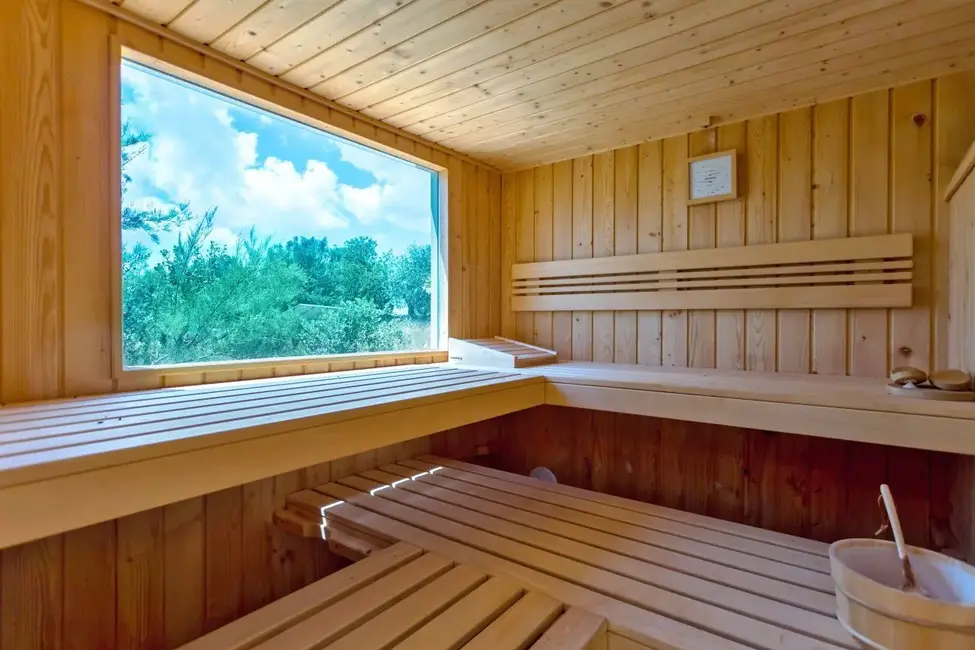Im Außenbereich erwartet Sie mediterranes Lebensgefühl pur: ein Salzwasserpool (53 m²) mit komfortabler Einstiegstreppe, mehrere überdachte und offene Terrassen, eine Feuerstelle, Sauna, Boulebahn, ein Olivenhain mit Hängematten sowie zahlreiche Rückzugsorte. Das separate Gästehaus am Pool verfügt über ein eigenes Duschbad, Fußbodenheizung, Klimaanlage und Internet – perfekt für Familie oder Freunde.