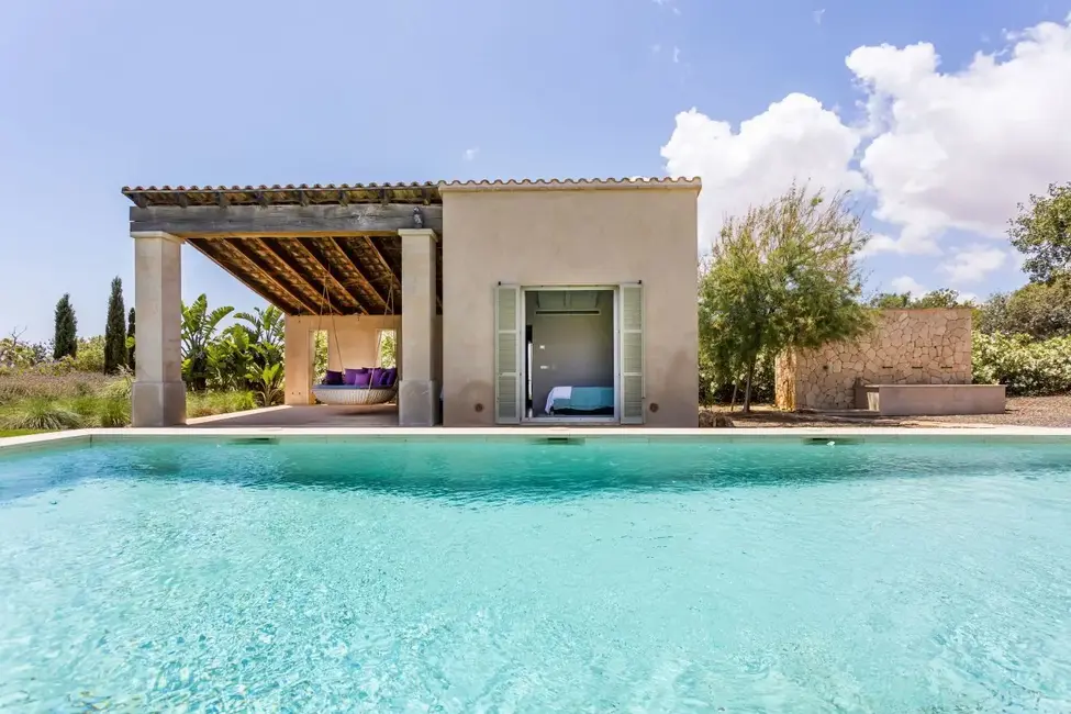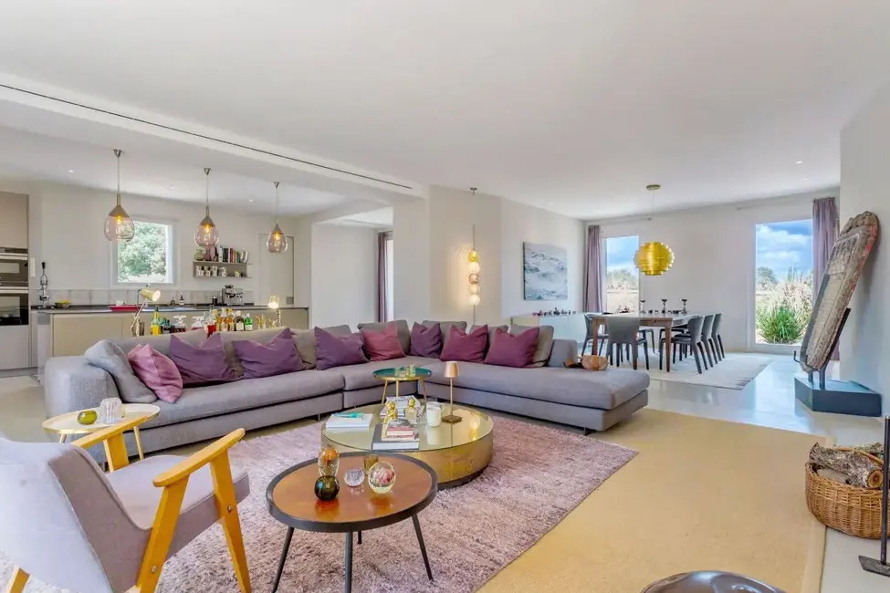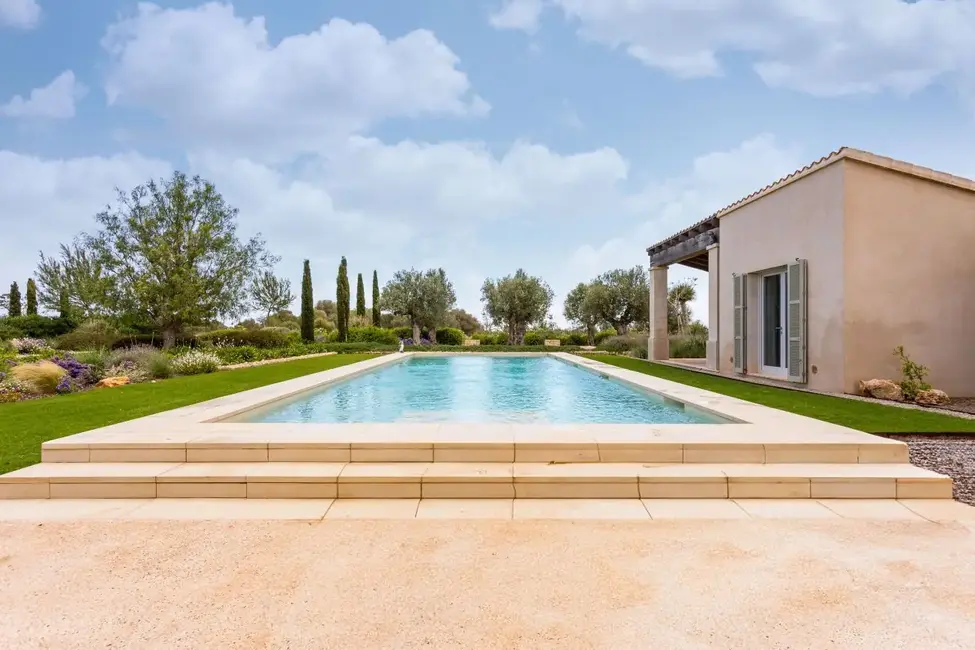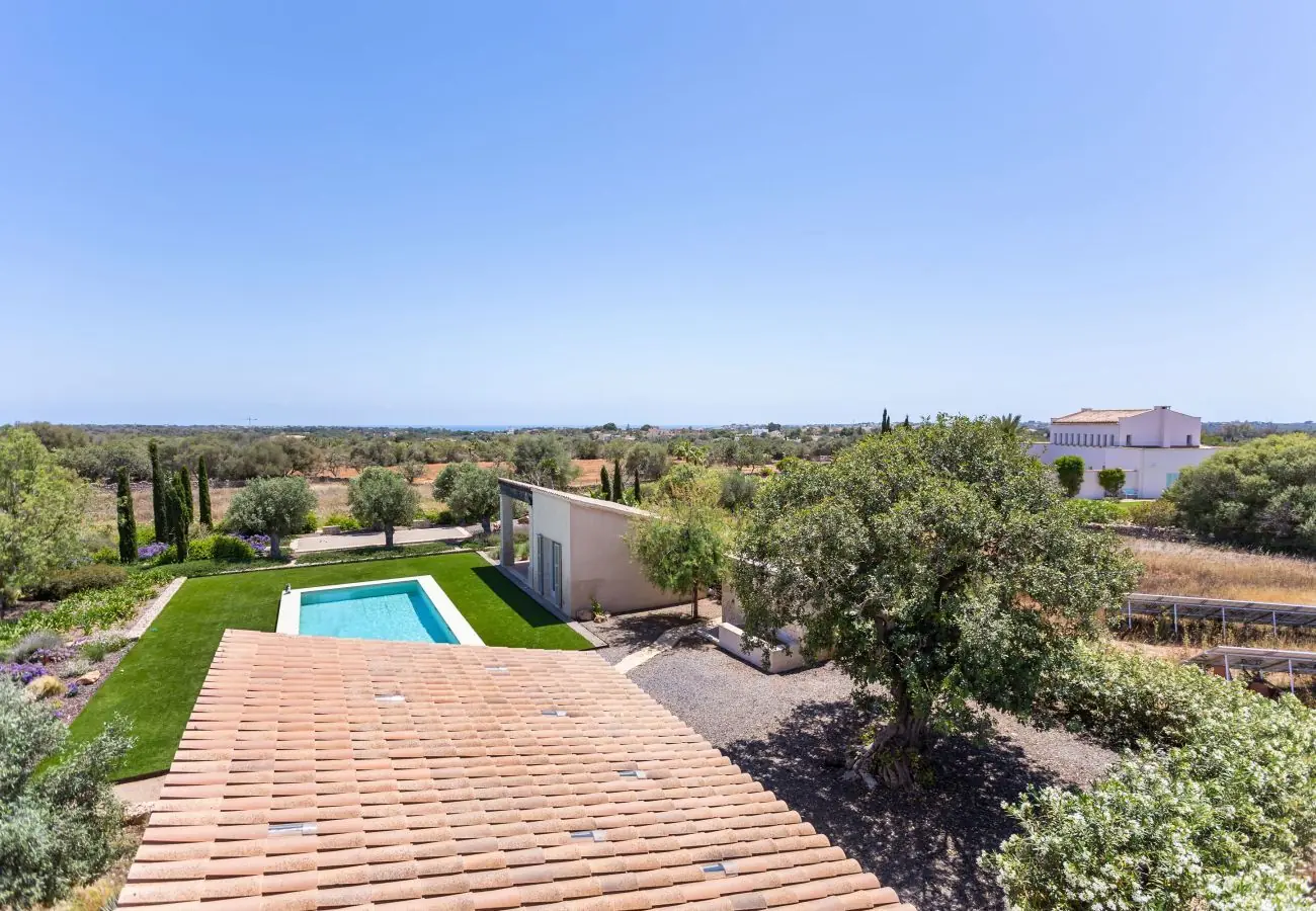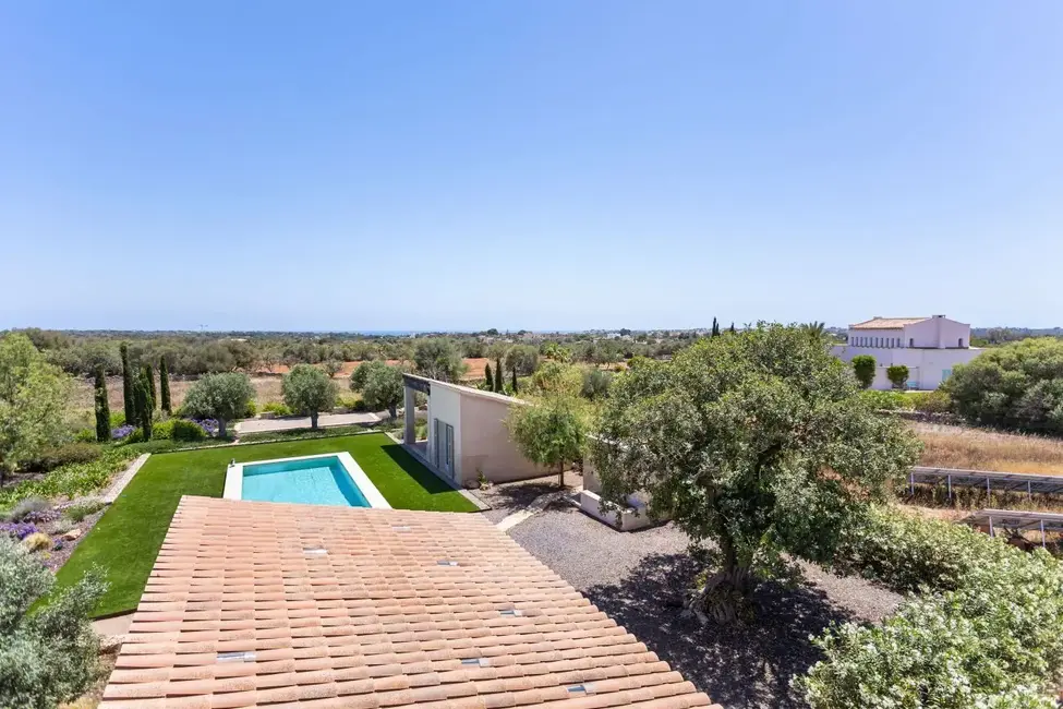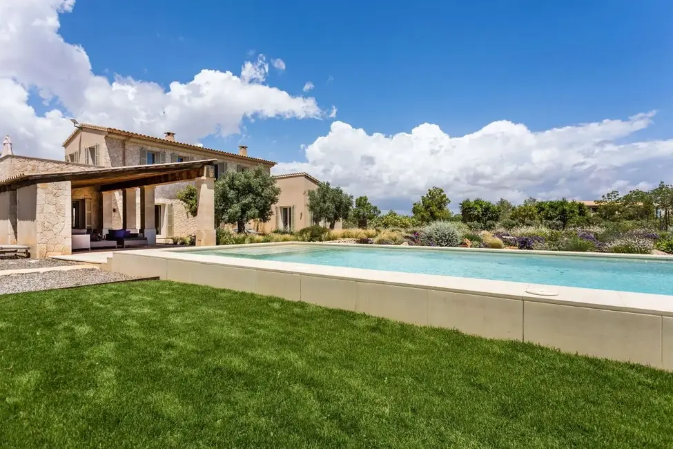 Diese exklusive Neubaufinca aus dem Jahr 2021 liegt in ruhiger Lage am Ortsrand von Santanyà und vereint moderne Eleganz mit mallorquinischem Charme. Auf einem großzügigen Grundstück von 15.400 m² bietet das Anwesen rund 478 m² Wohnfläche, verteilt auf zwei Ebenen sowie ein separates Gästehaus.