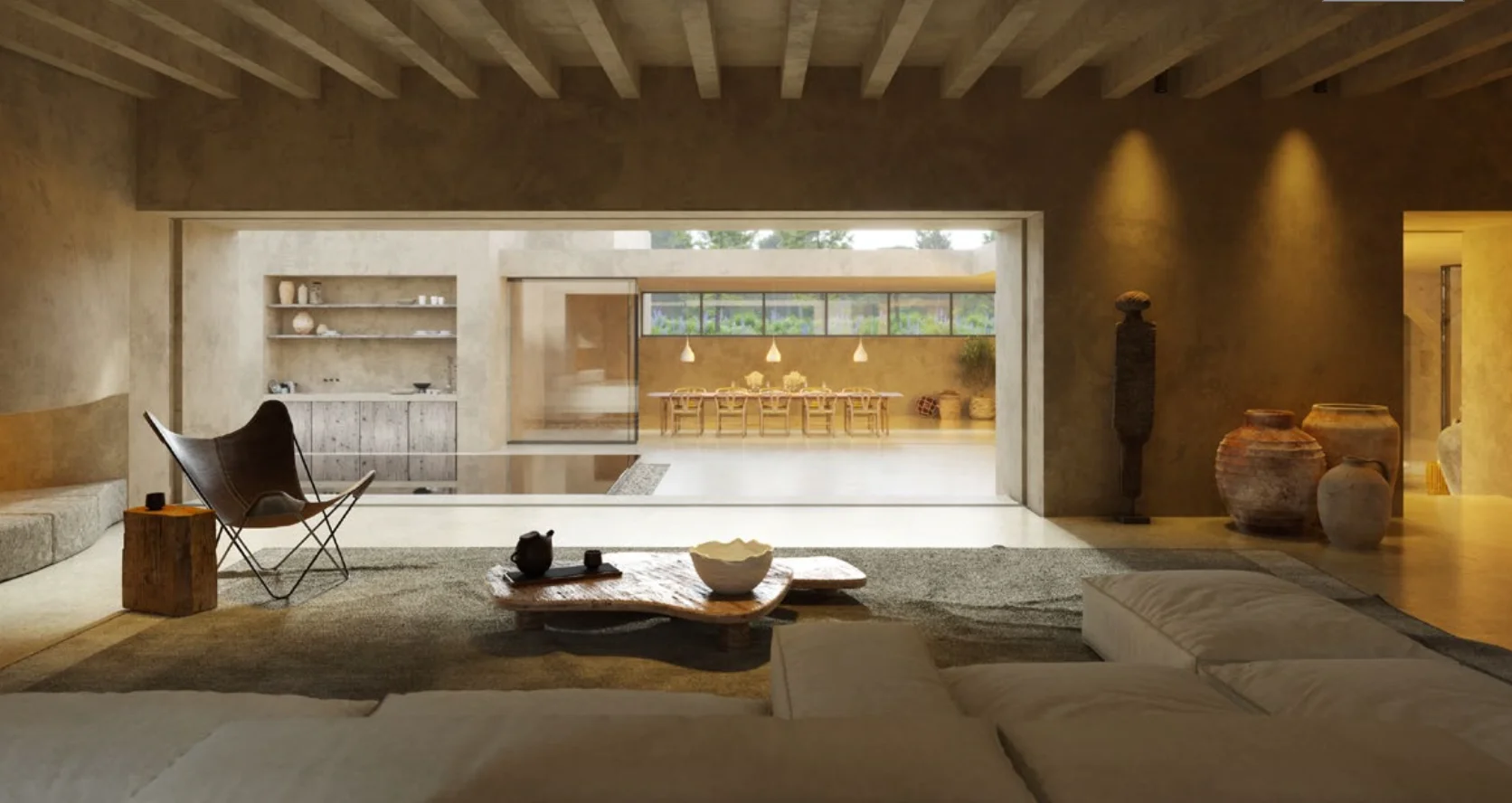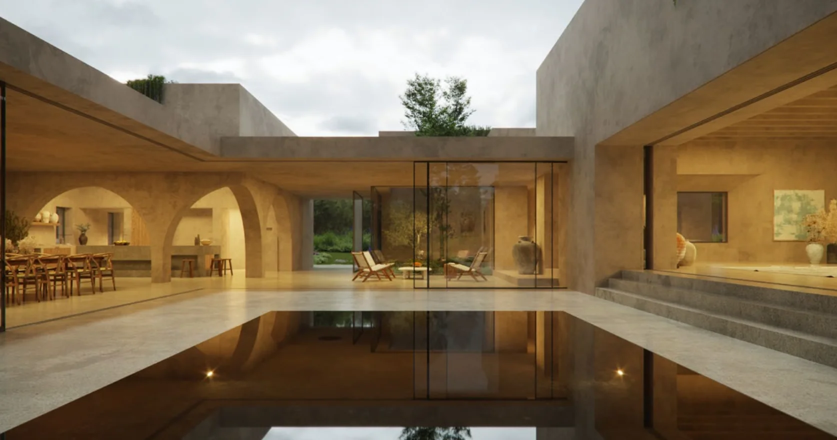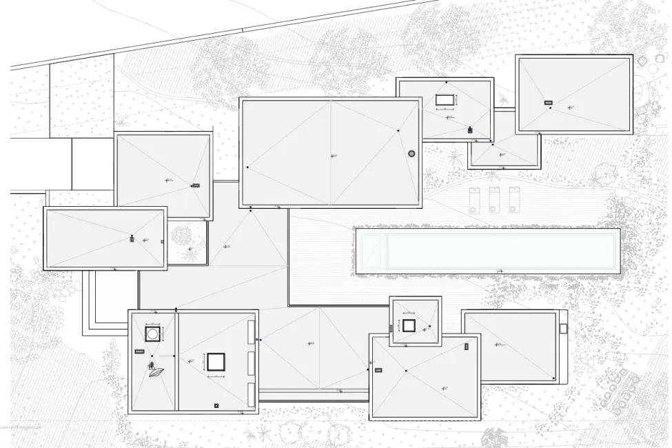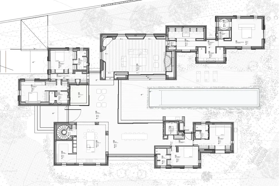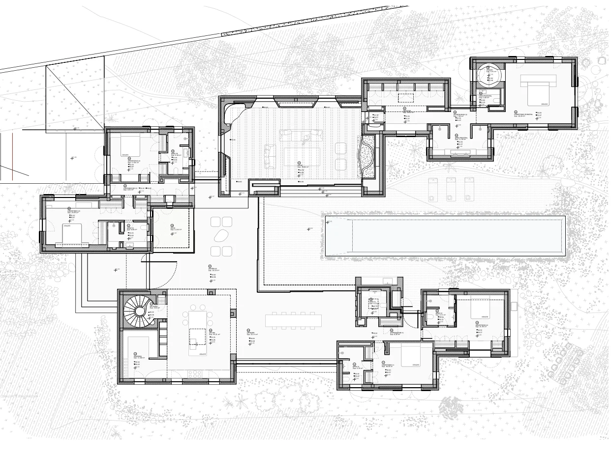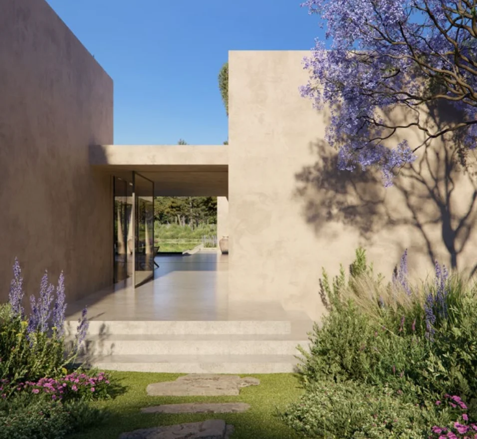 Die Villa besticht durch ihre harmonische Kombination aus mediterraner Bauweise und klaren, modernen Linien. Hochwertige Materialien, großzügige Glasflächen und offene Grundrisse schaffen ein lichtdurchflutetes Wohnambiente mit fließenden Übergängen zwischen Innen- und Außenbereich.