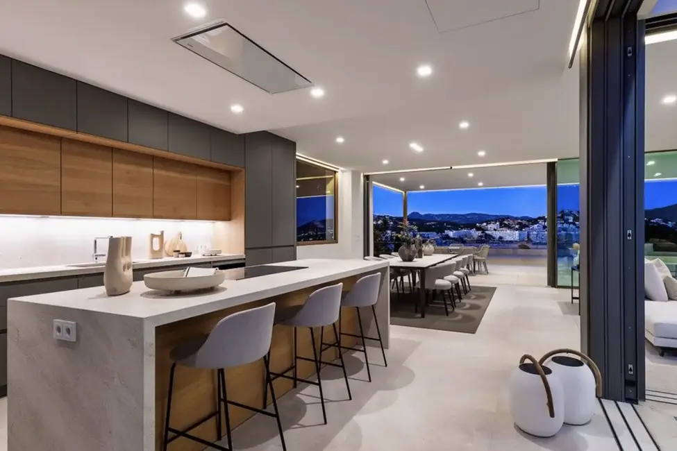 Diese exklusive Neubauvilla, fertiggestellt im Jahr 2024, befindet sich in einer begehrten Wohngegend von Santa Ponsa und bietet dank ihrer erhöhten Lage einen atemberaubenden Meerblick. Die Villa wurde optimal auf das 1.464 m² große Grundstück konzipiert, um maximale Privatsphäre, ideale Blickachsen und optimale Sonneneinstrahlung zu gewährleisten. Mediterrane Elemente wurden harmonisch mit modernem Wohnkomfort und zeitgemäßem Design kombiniert, um ein helles und offenes Wohnambiente zu schaffen.