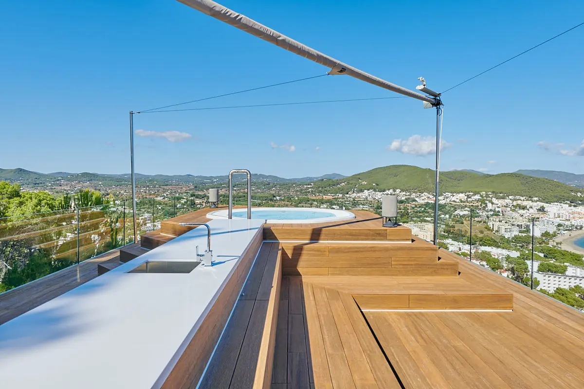 Mit 13 Überwachungskameras, einer unabhängigen Stromversorgung und einer zentralen Osmoseanlage für Trinkwasserqualität kombiniert Casa Hollywood luxuriöses Wohnen mit höchsten Sicherheits- und Komfortstandards. Es repräsentiert eine einmalige Gelegenheit, ein Stück des begehrten Ibiza-Lifestyles in einer der exklusivsten Villen der Insel zu erleben.