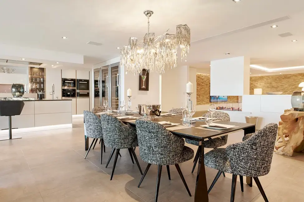 Die große Miele-Küche mit Kochinsel und Frühstücksbar, ergänzt durch einen BBQ-Bereich am Pool, bietet die perfekte Kulisse für gesellige Abende und kulinarische Erlebnisse. Casa Hollywood setzt mit seiner puristischen Architektur, den LED-beleuchteten Räumen, dem Thyssen-Glaselevator und den luxuriösen Missoni Außenmöbeln neue Maßstäbe in puncto Design und Komfort.