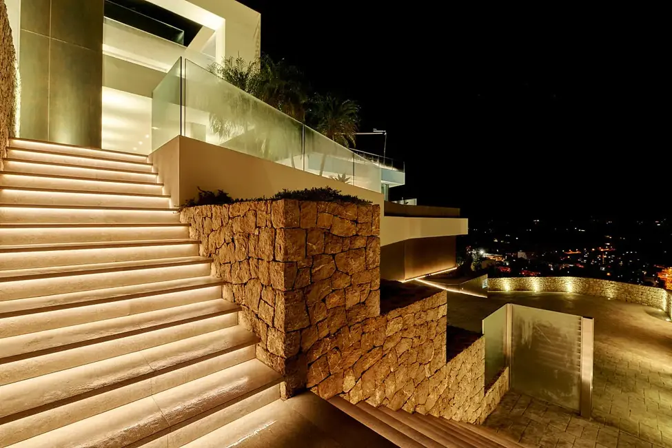 Jedes der 5 Schlafzimmer, ergänzt durch Personalunterkünfte und einen flexiblen Fitnessraum, der in eine VIP-Suite umgewandelt werden kann, ist ein Rückzugsort für sich, ausgestattet mit Minotti Betten und hochwertigen Einrichtungsgegenständen. Die Villa verfügt über insgesamt 7 Badezimmer, inklusive eines im Personalbereich, und 3 Gäste-WCs, alle mit Porcelanosa-Fliesen und exquisiten Badausstattungen versehen. Das Herzstück des Außenbereichs bildet ein beheizter Infinity-Pool, der mit moderner LED-RYB-Beleuchtung für stimmungsvolle Abende sorgt.