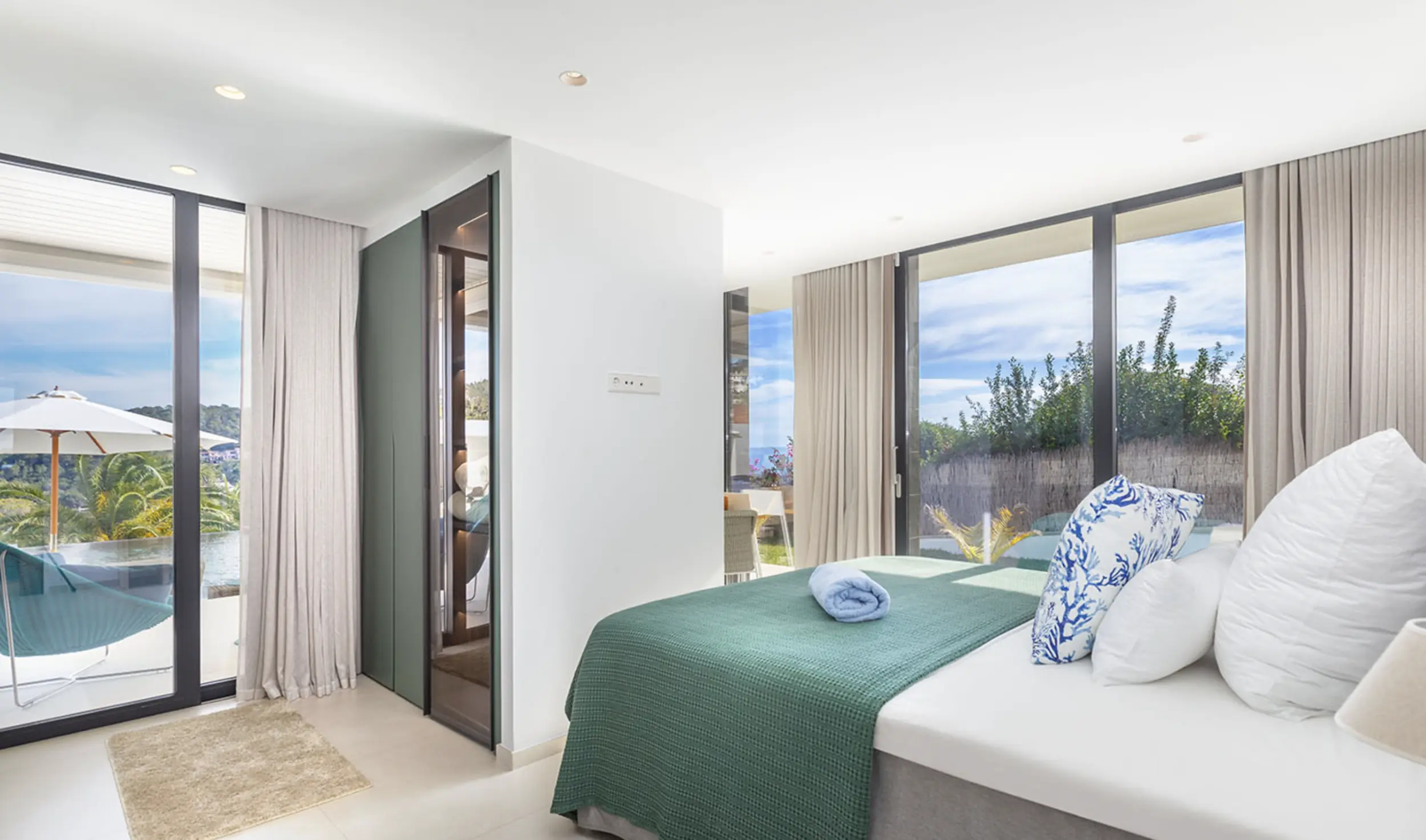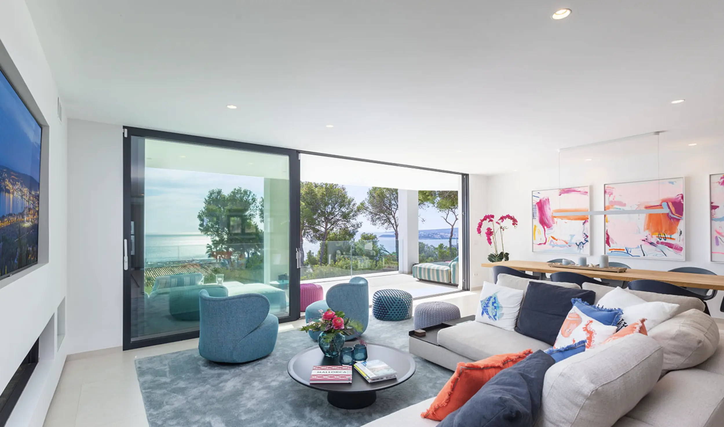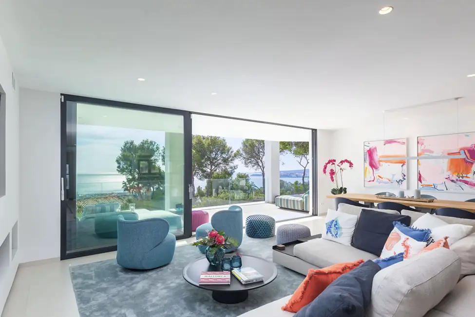 Durch die zum Meer ausgerichteten Glasfronten verschmelzen Innen- und Außenbereiche, wodurch ein harmonisches, naturverbundenes Wohnerlebnis mit spektakulärer Aussicht entsteht.