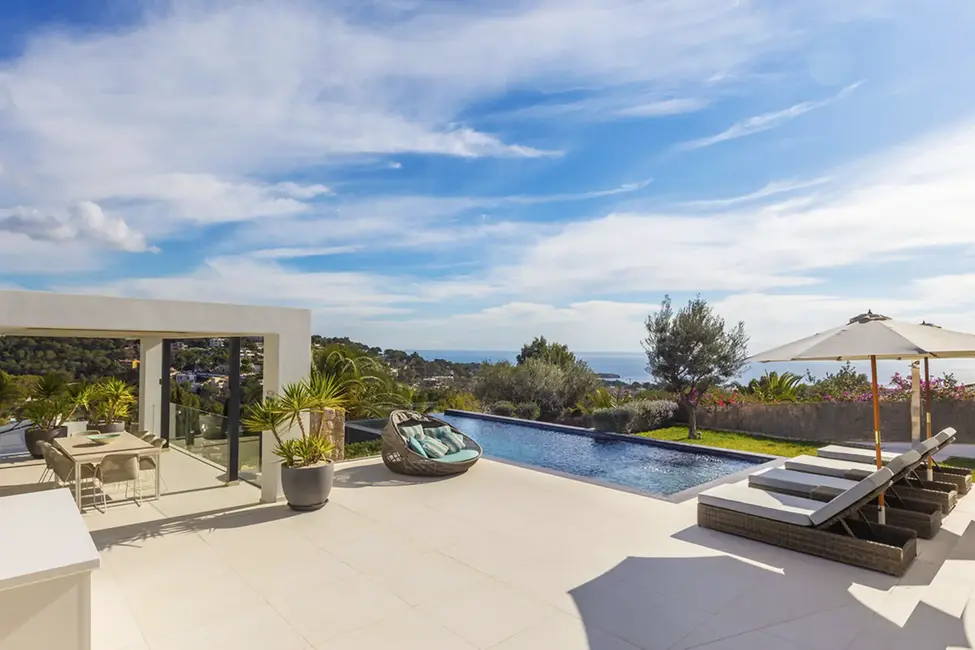 Die exklusive Lage an der Südwestküste Mallorcas kombiniert Privatsphäre und Ruhe mit einer hervorragenden Anbindung an die luxuriösen Annehmlichkeiten der Region. Der renommierte Hafen Puerto Portals, der königliche Golfplatz von Bendinat sowie die Metropole Palma befinden sich in unmittelbarer Nähe. Zudem sind der Flughafen, Küstenorte, Golfplätze und Yachthäfen in wenigen Minuten über die Autobahn erreichbar. Einkaufsmöglichkeiten, internationale Schulen sowie diverse Sport- und Freizeiteinrichtungen sind ebenfalls schnell erreichbar. Dank der erhöhten Lage genießt man einen atemberaubenden Panoramablick auf die Küste und das Meer.