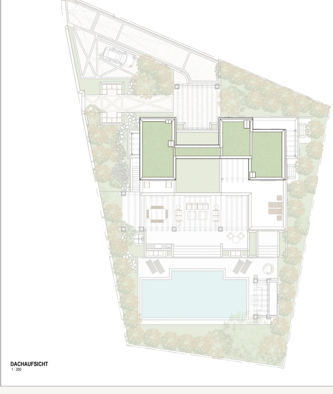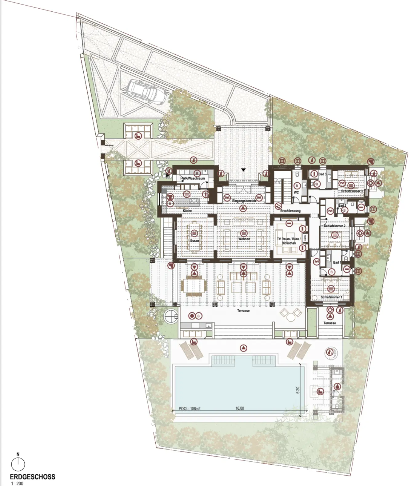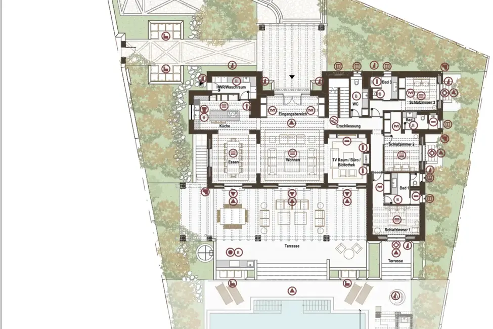 Erdgeschoss: Wohnen, Küche, 3 Schlafzimmer, Poolterrasse