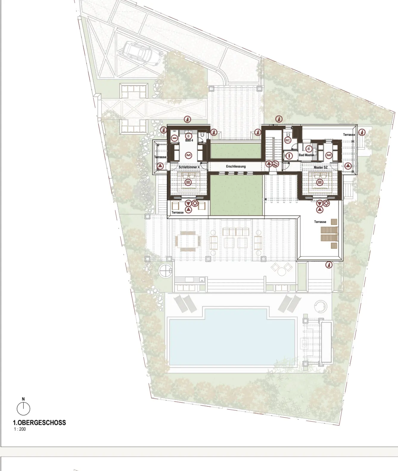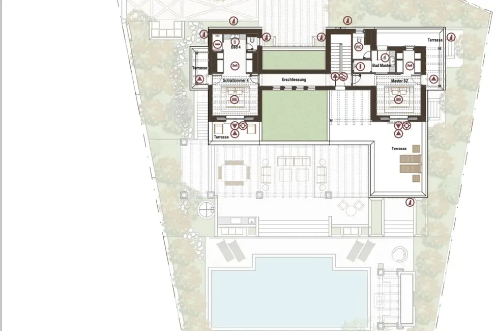 Obergeschoss: Master-Suite mit Bad und privater Terrasse