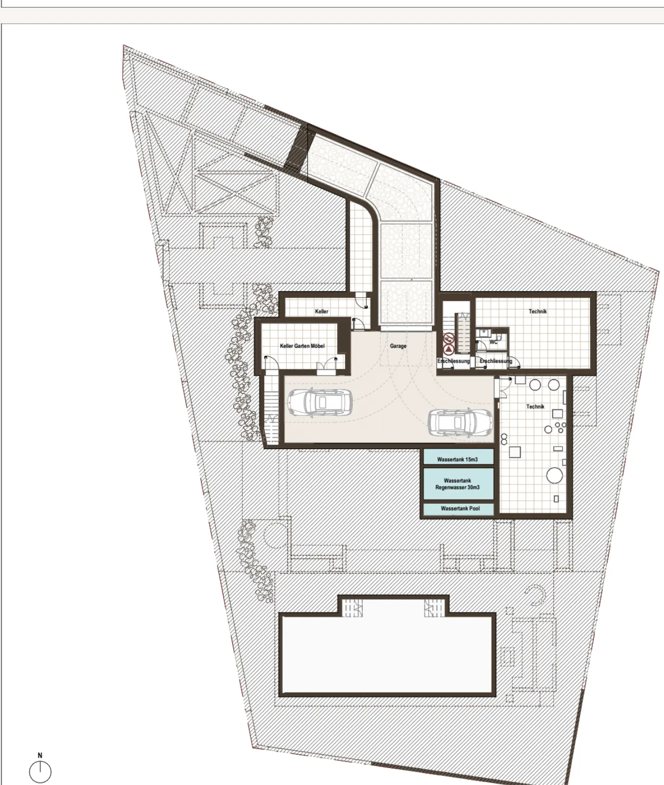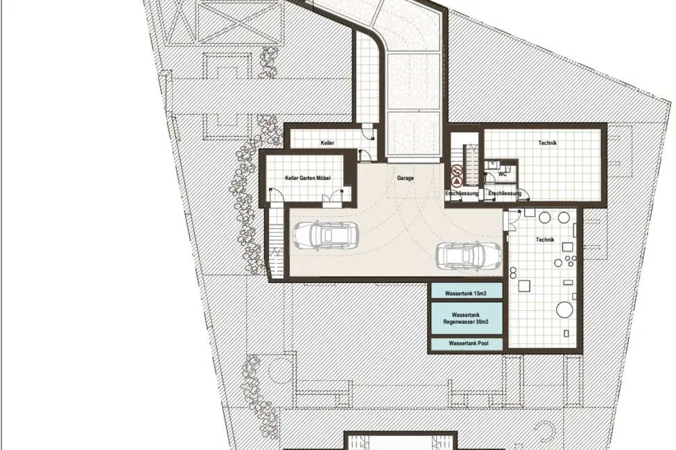 Untergeschoss: Garage, Technikräume, Lager