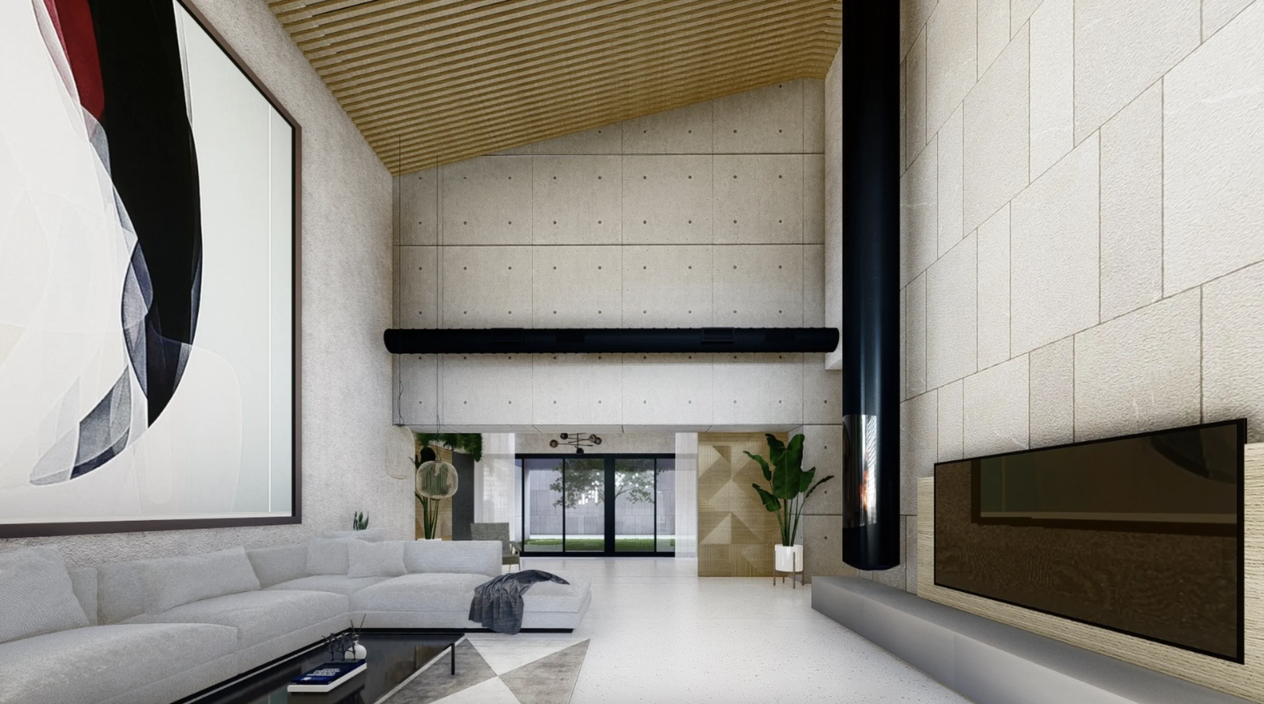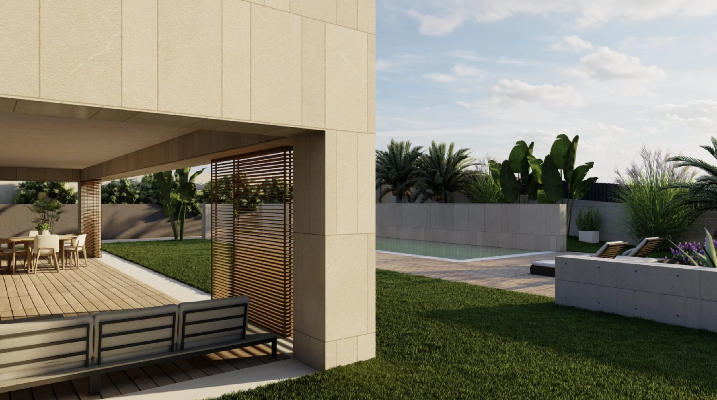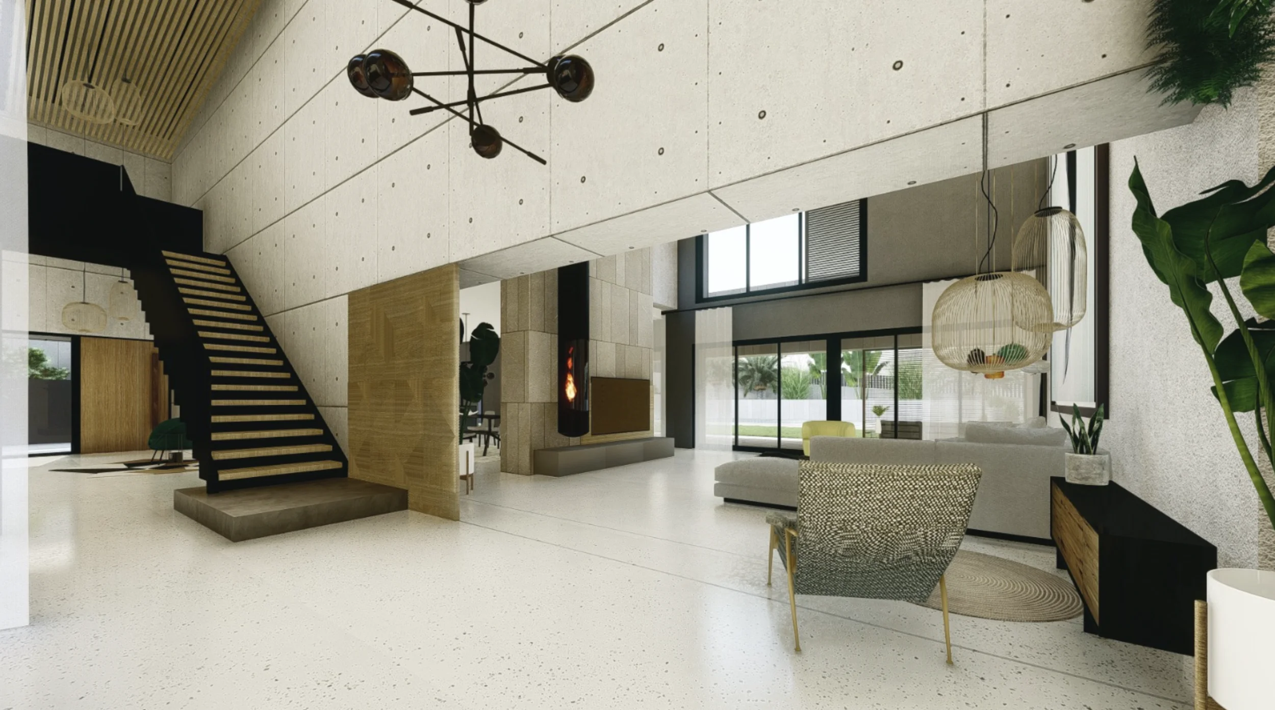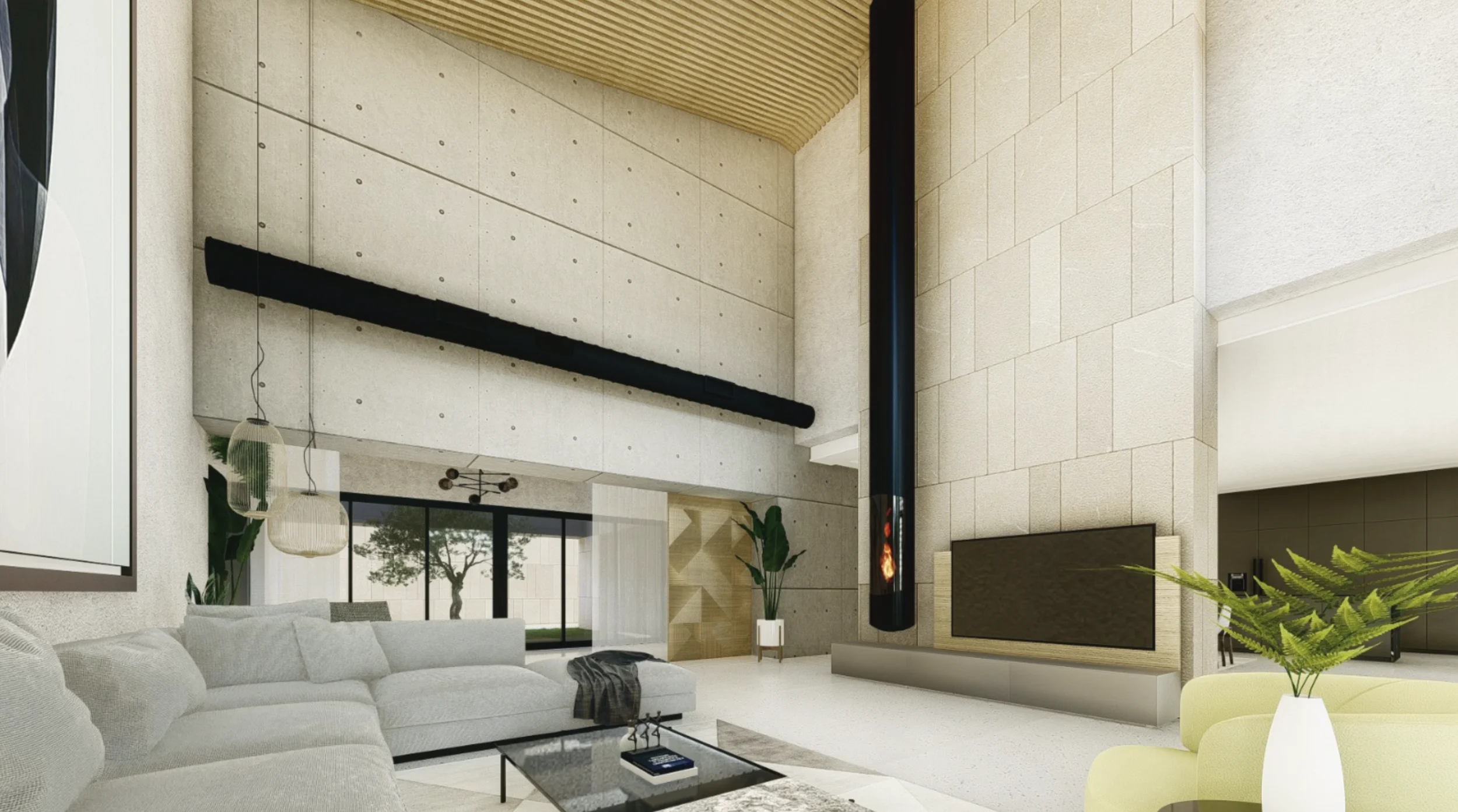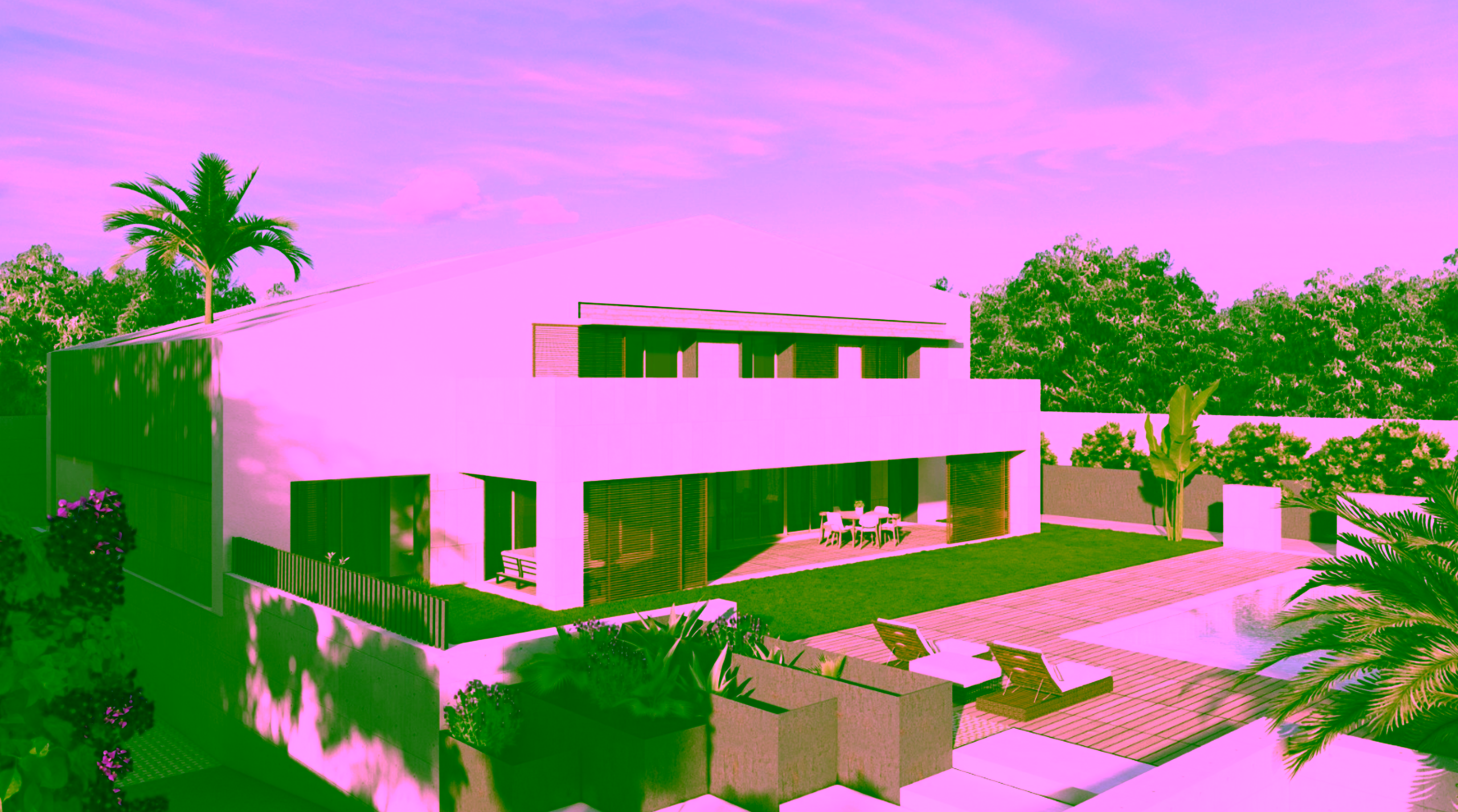 Geplant ist ein modernes, lichtdurchflutetes Zuhause mit doppelt hohen Decken, großzügigen Fensterfronten und fließenden Übergängen zwischen Innen- und Außenbereichen. Der Wohnraum öffnet sich zum Garten und zum vorgesehenen Poolbereich und schafft ideale Voraussetzungen für ein entspanntes Familienleben sowie gesellige Stunden mit Freunden.