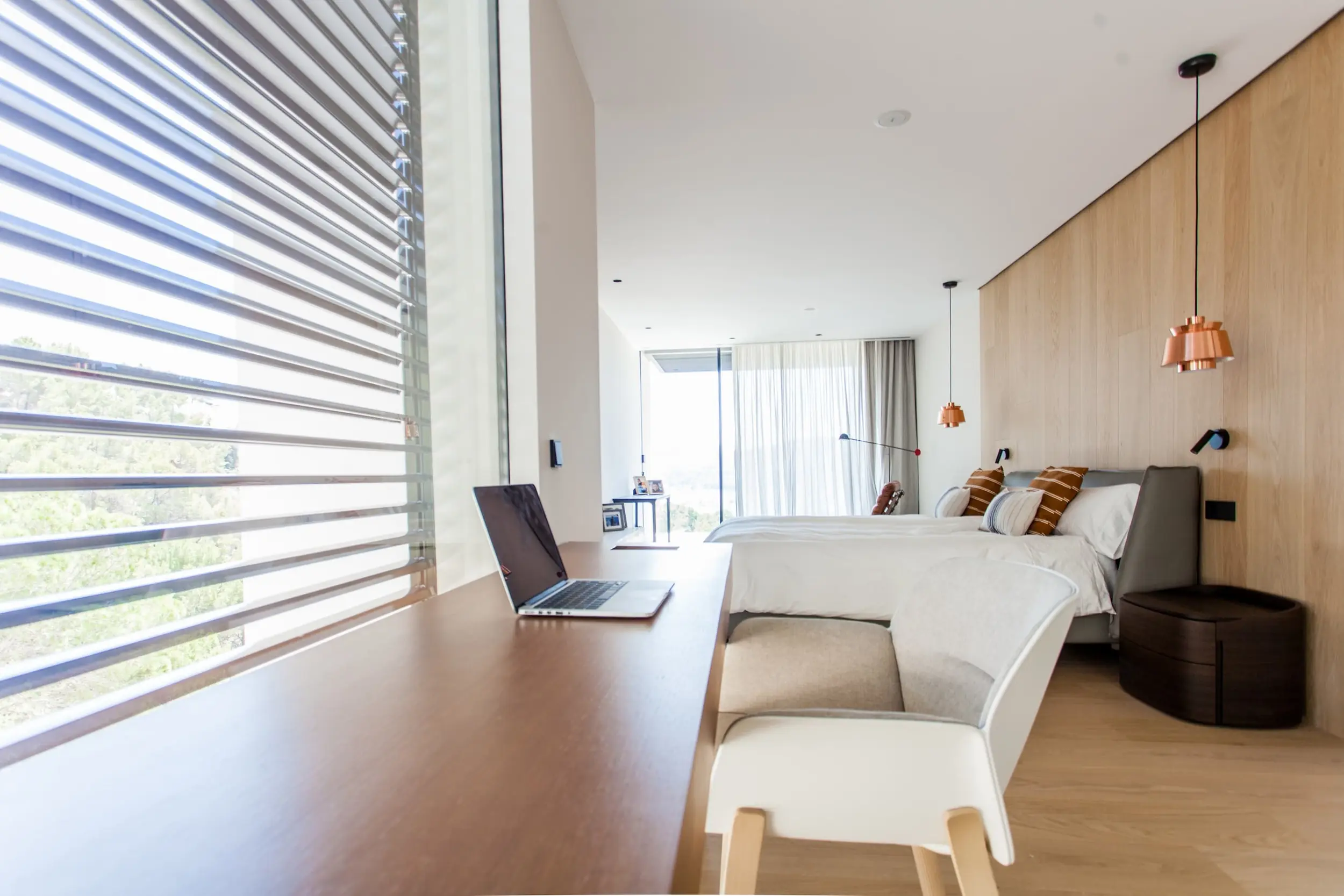 Die Villa verfügt über insgesamt sechs voll ausgestattete Schlafzimmer, jedes mit eigenem Bad en suite. Diese Zimmer sind mit Bedacht gestaltet, um friedliche Rückzugsorte zu schaffen. Die Master-Suite, mit eigenem Balkon, bietet einen privaten Rückzugsort mit wunderschönem Ausblick auf den Hafen.