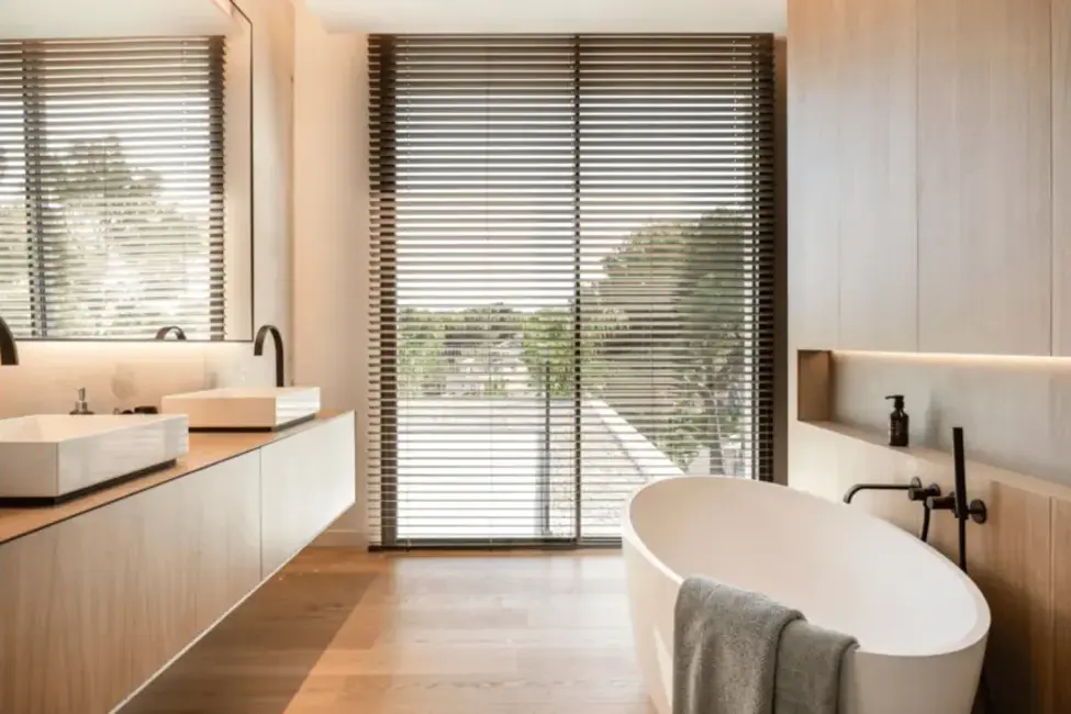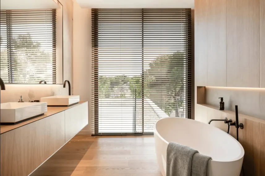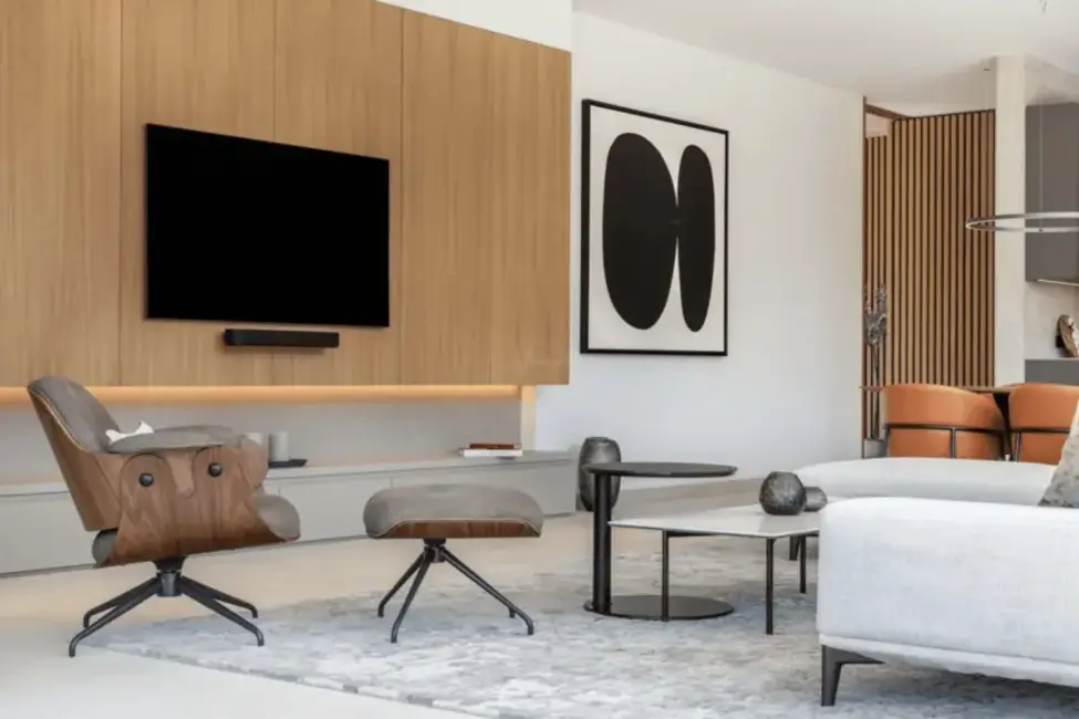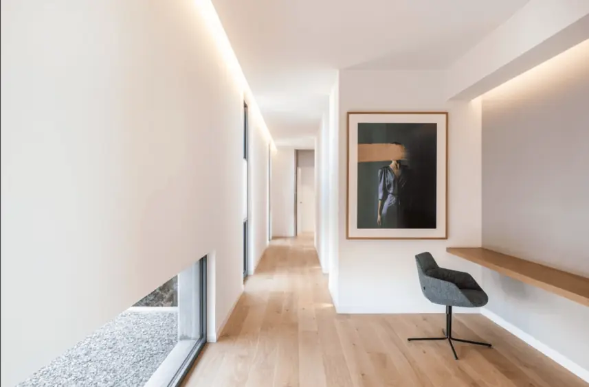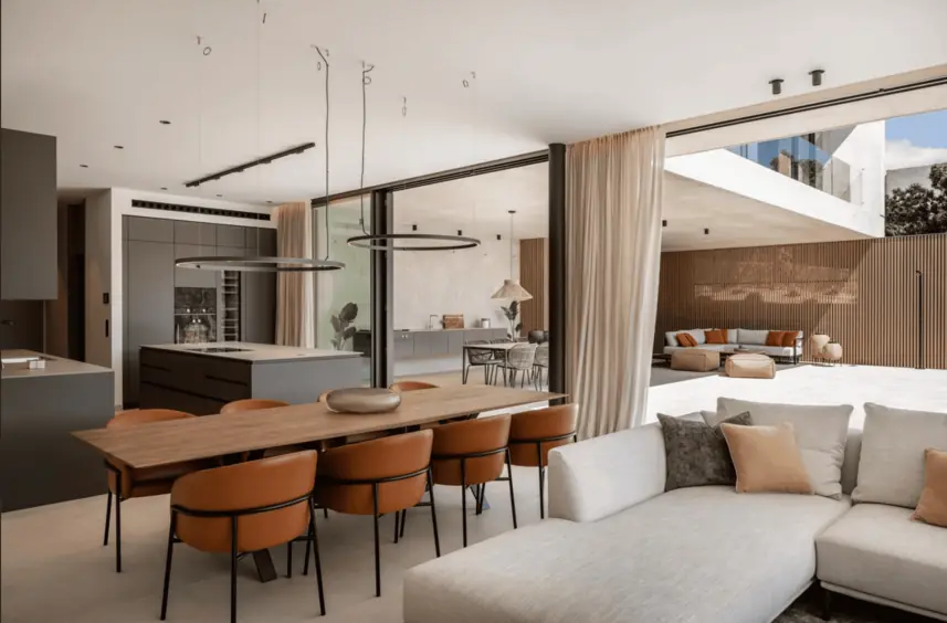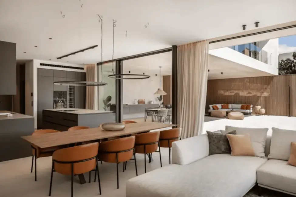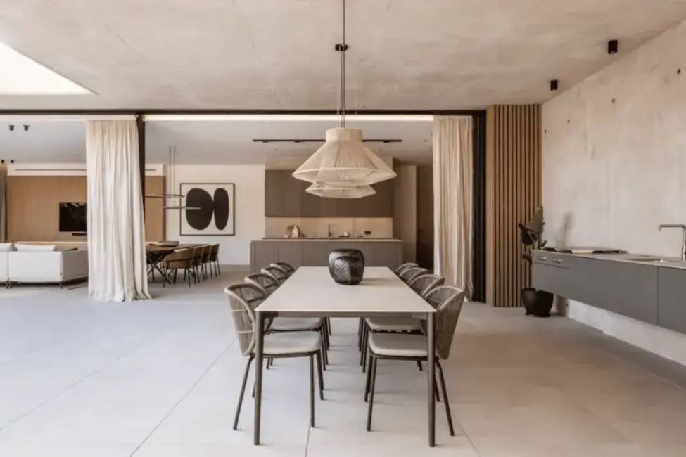 Die Kombination aus betonter Klarheit im Design, natürlicher Materialwahl und modernster Technik (inkl. Domotik-System) schafft ein einzigartiges Wohnerlebnis.