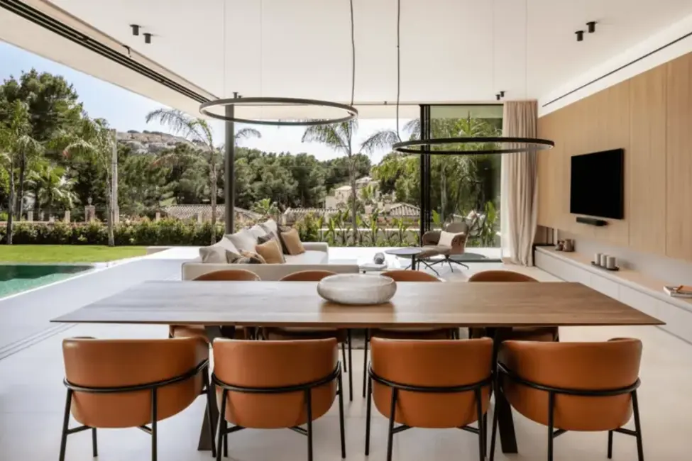 Mit einer Wohnfläche von 406 m² auf einem großzügigen Grundstück von 1.180 m² erstreckt sich diese im Jahr 2022 erbaute Villa über zwei Etagen. Die durchdachte Architektur richtet sich an Familien, die sowohl ein exklusives Feriendomizil als auch eine vollwertige Hauptresidenz suchen. Das offene Raumkonzept im Erdgeschoss verbindet Wohn-, Essbereich und die hochwertige Einbauküche zu einer lichtdurchfluteten Einheit mit Blick auf den Garten und den Infinity-Salzwasserpool.